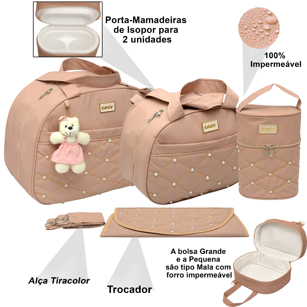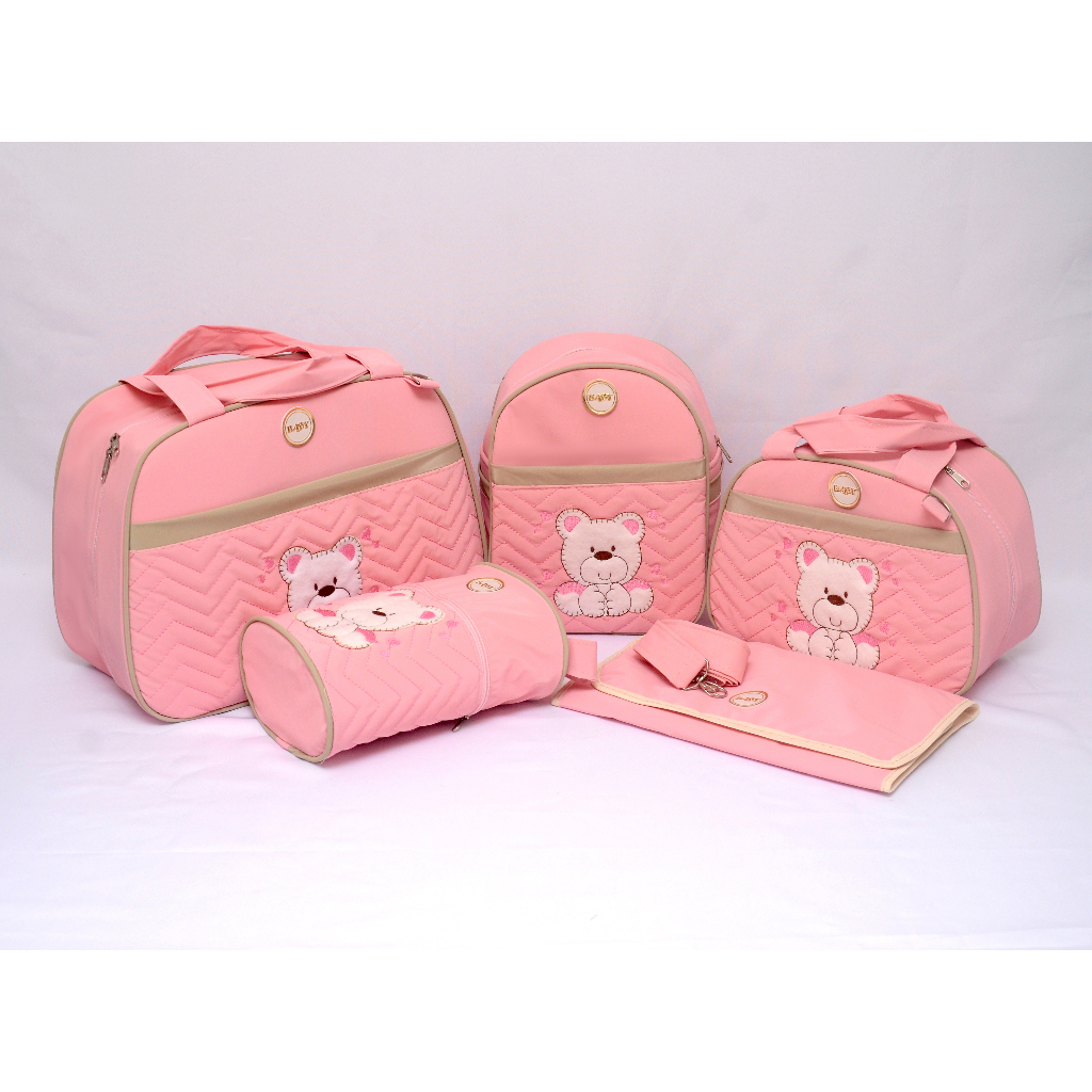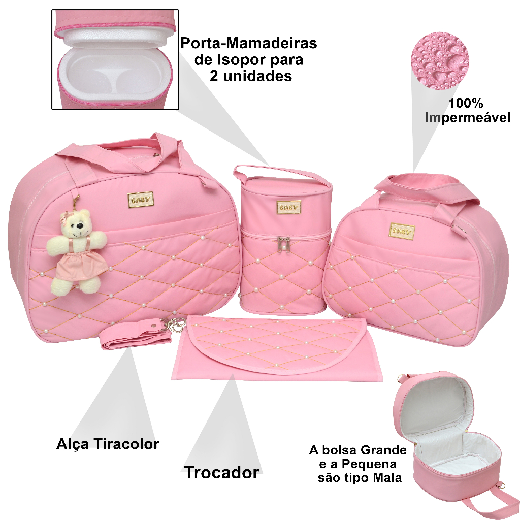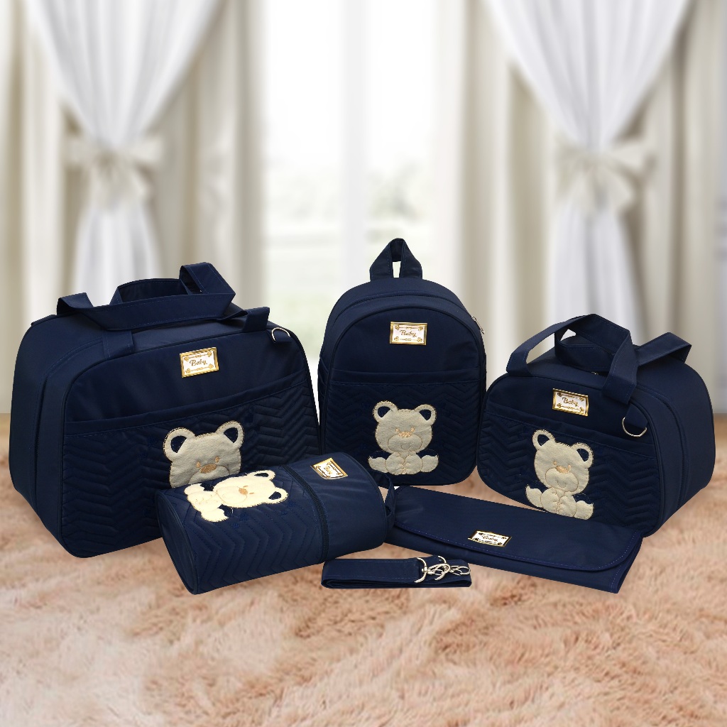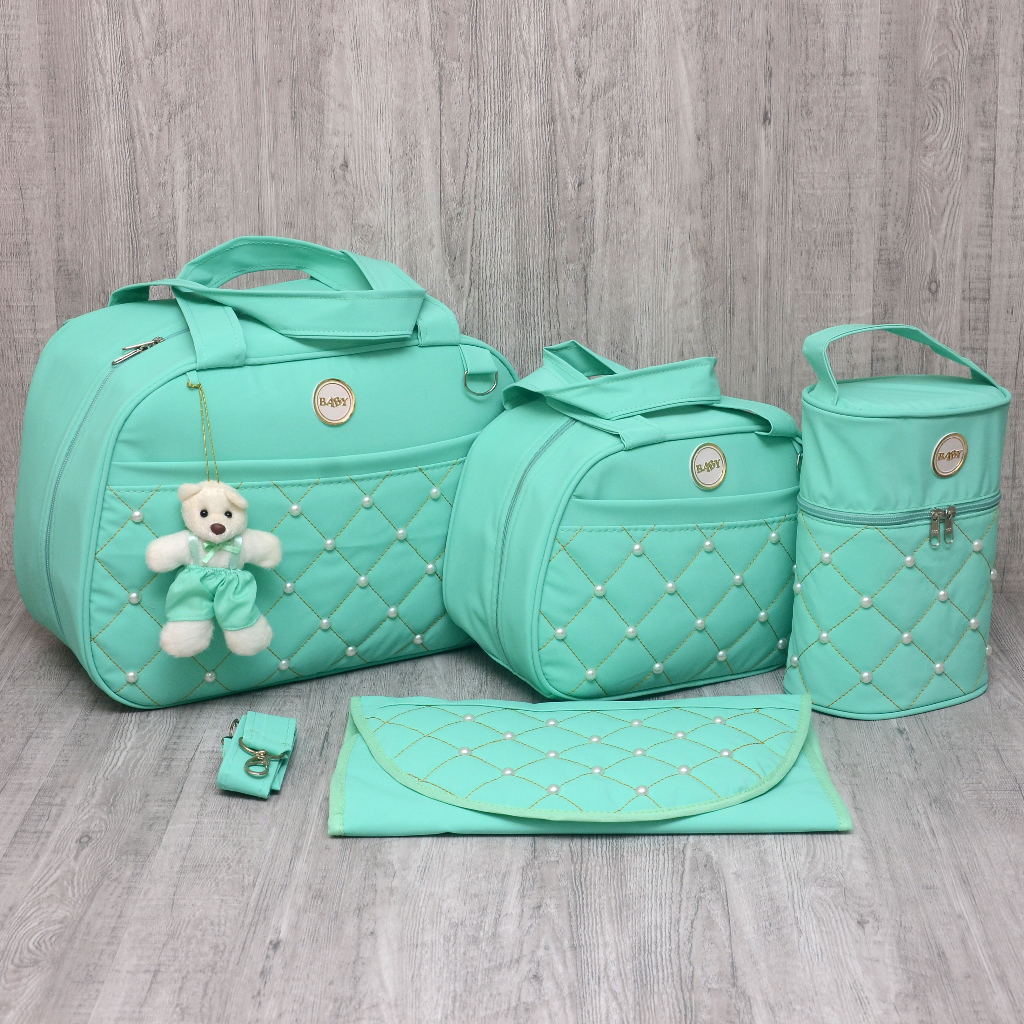 Kit Bolsa Bebê Maternidade Feminino Masculino 5 e 4 peças Mala Menino Menina Urso e Pérola