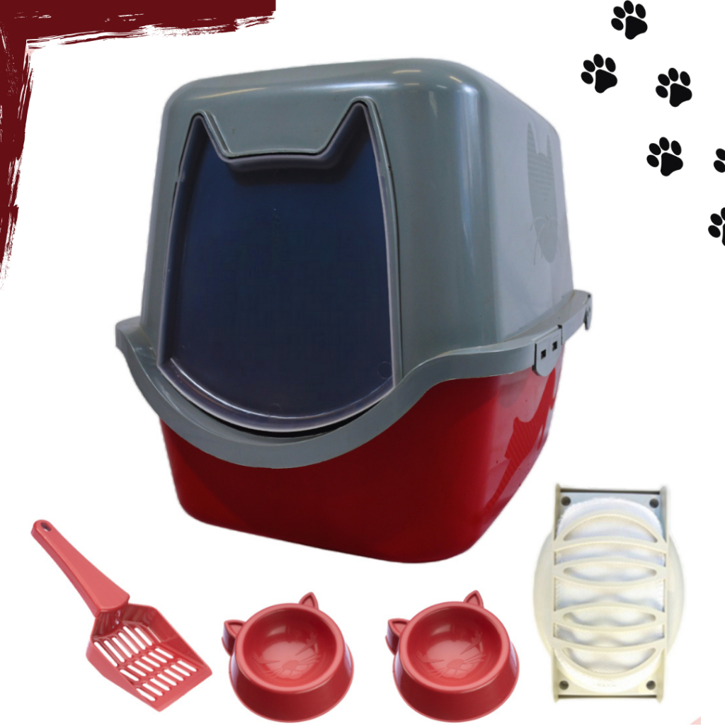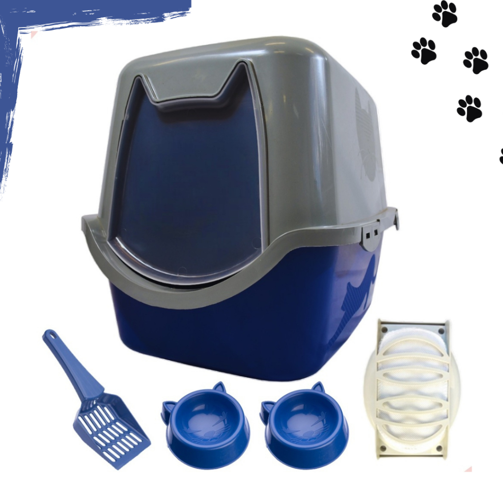Banheiro de gato caixa areia grande fechada peneira bandeja filtro antiodor + pá higiênica completo
