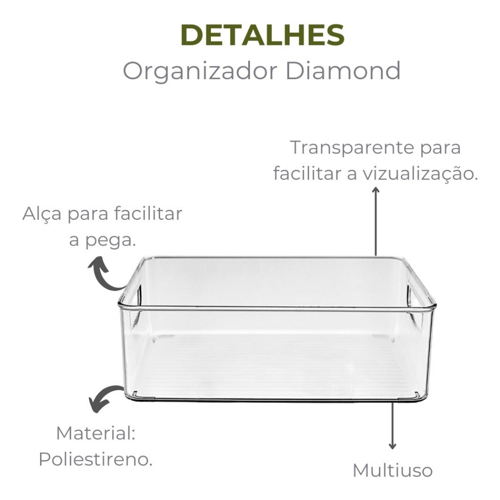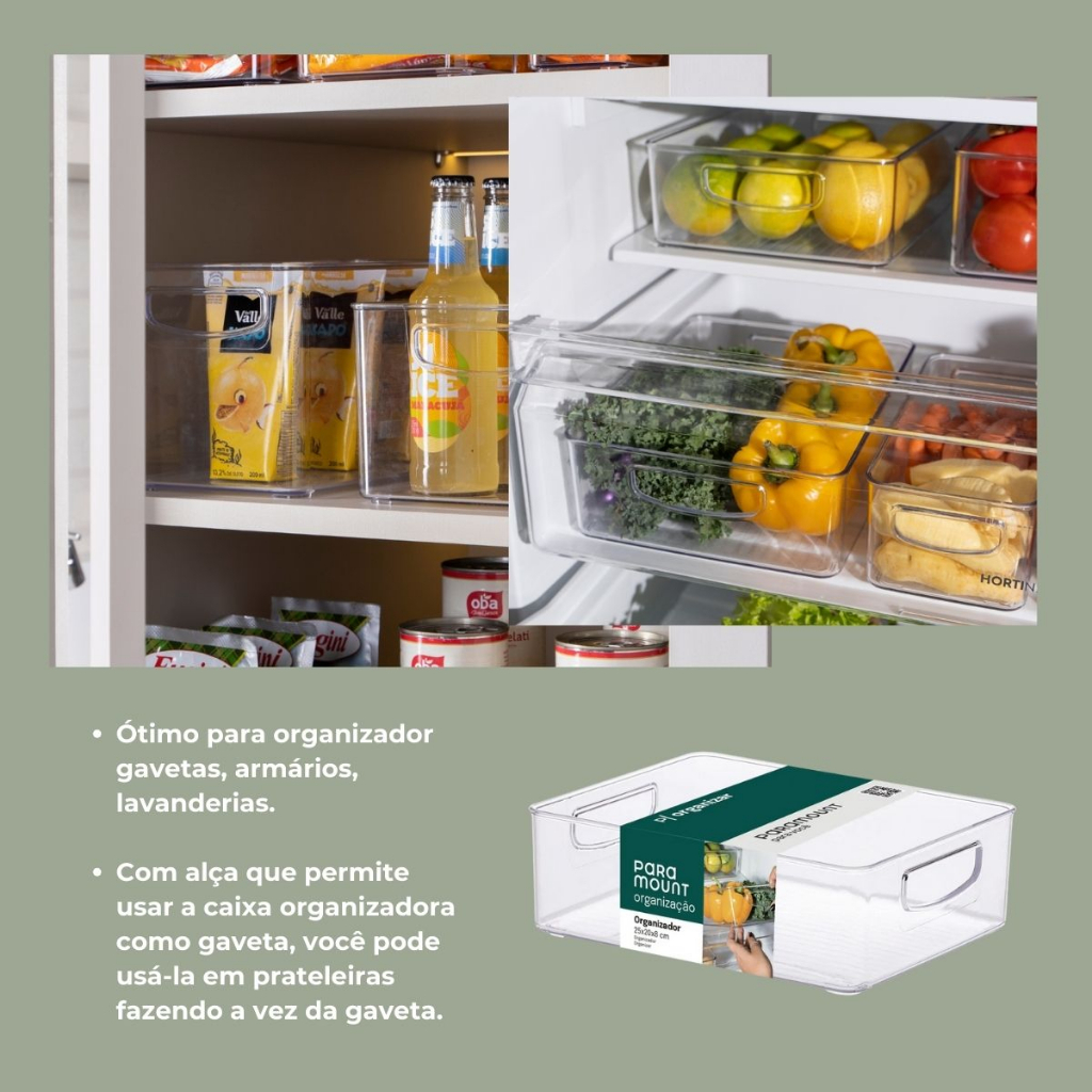 Organizador Acrílico com Alça 25×20×8 cm Paramount para Cozinha e Geladeira