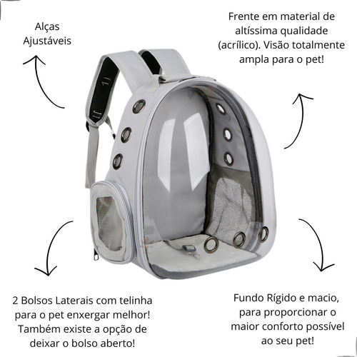 Mochila De Transporte Pet Visão 360 Panoramica Gato Cão Cores