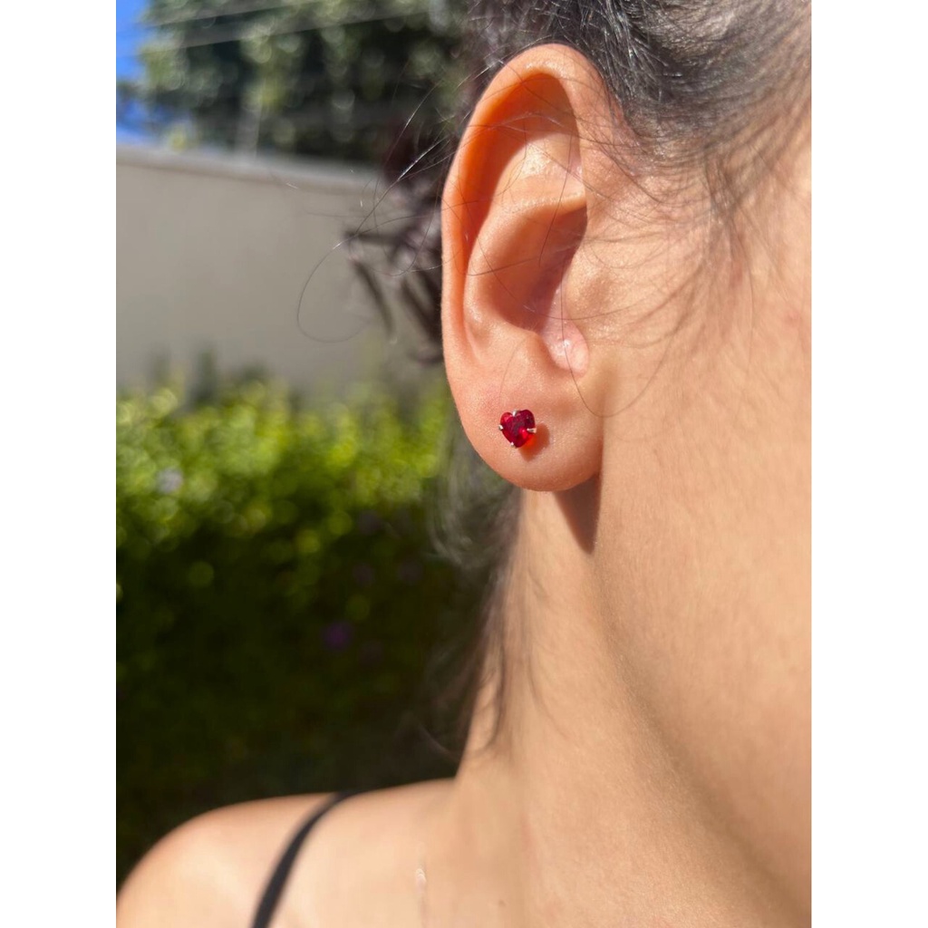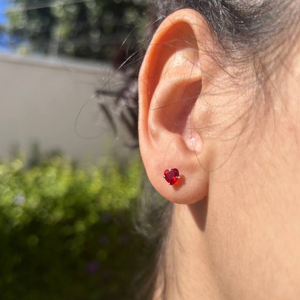 Brinco Vermelho Coraçao Mini 4 mm Zirconia Ponto De Luz Prata 925