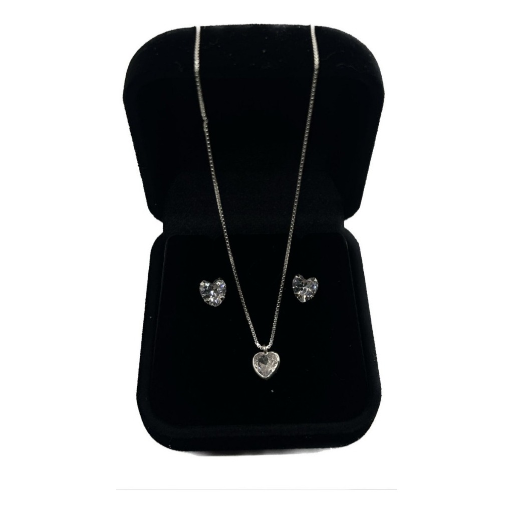 Conjunto Colar e Brinco Coração Ponto De Luz 6mm Feminino