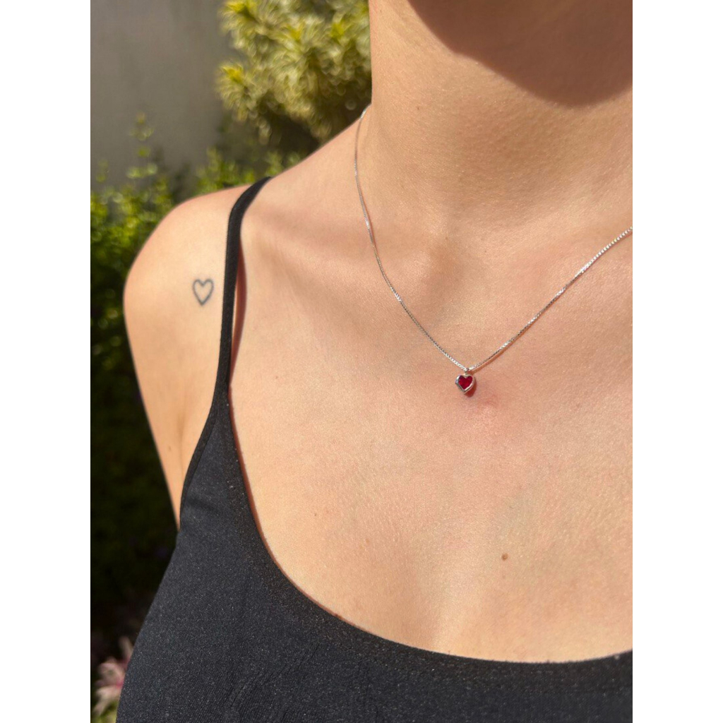 Colar Cordão Ponto de Luz Vermelho Coração em Prata 925
