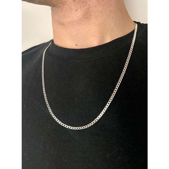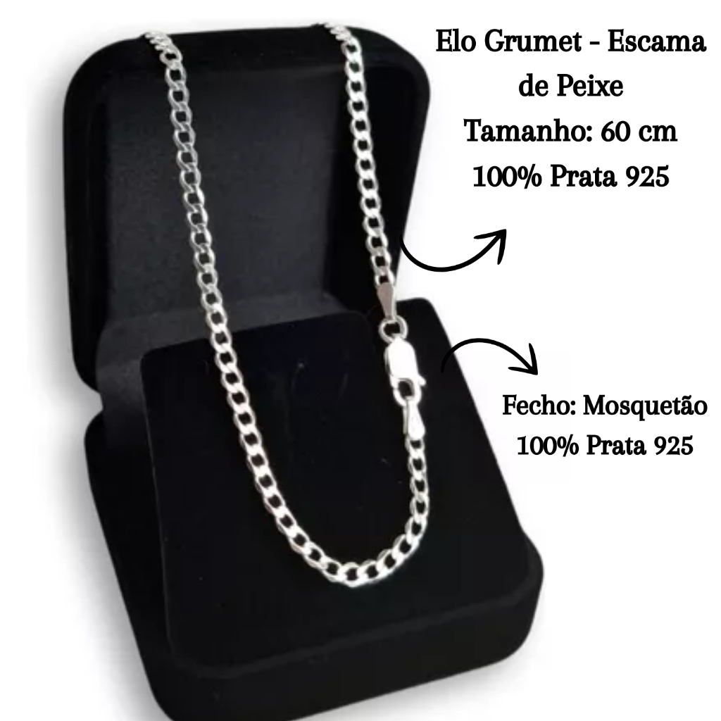 Corrente Grumet 3mm Escama de Peixe 60cm Italiana Prata 925 Maciça Masculina