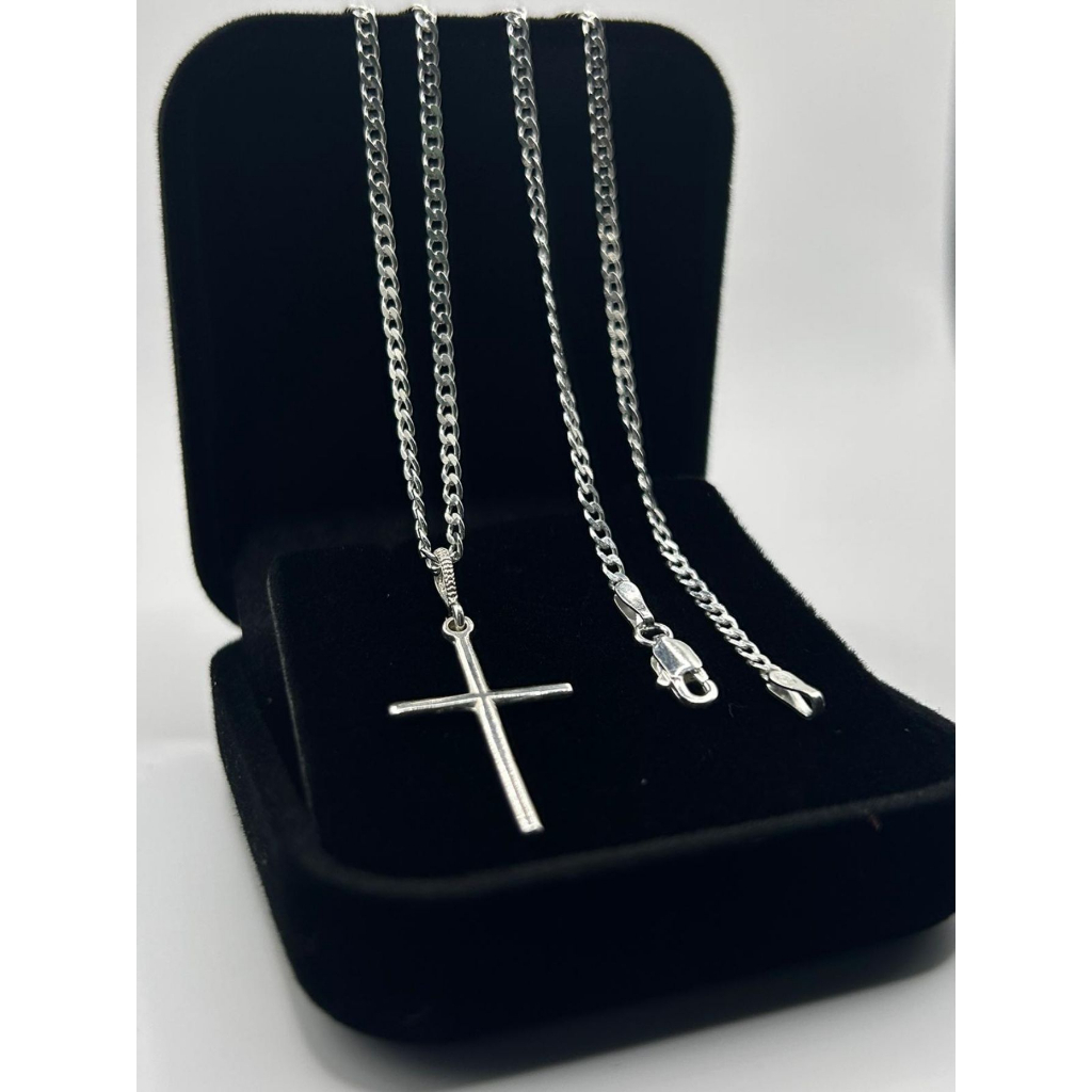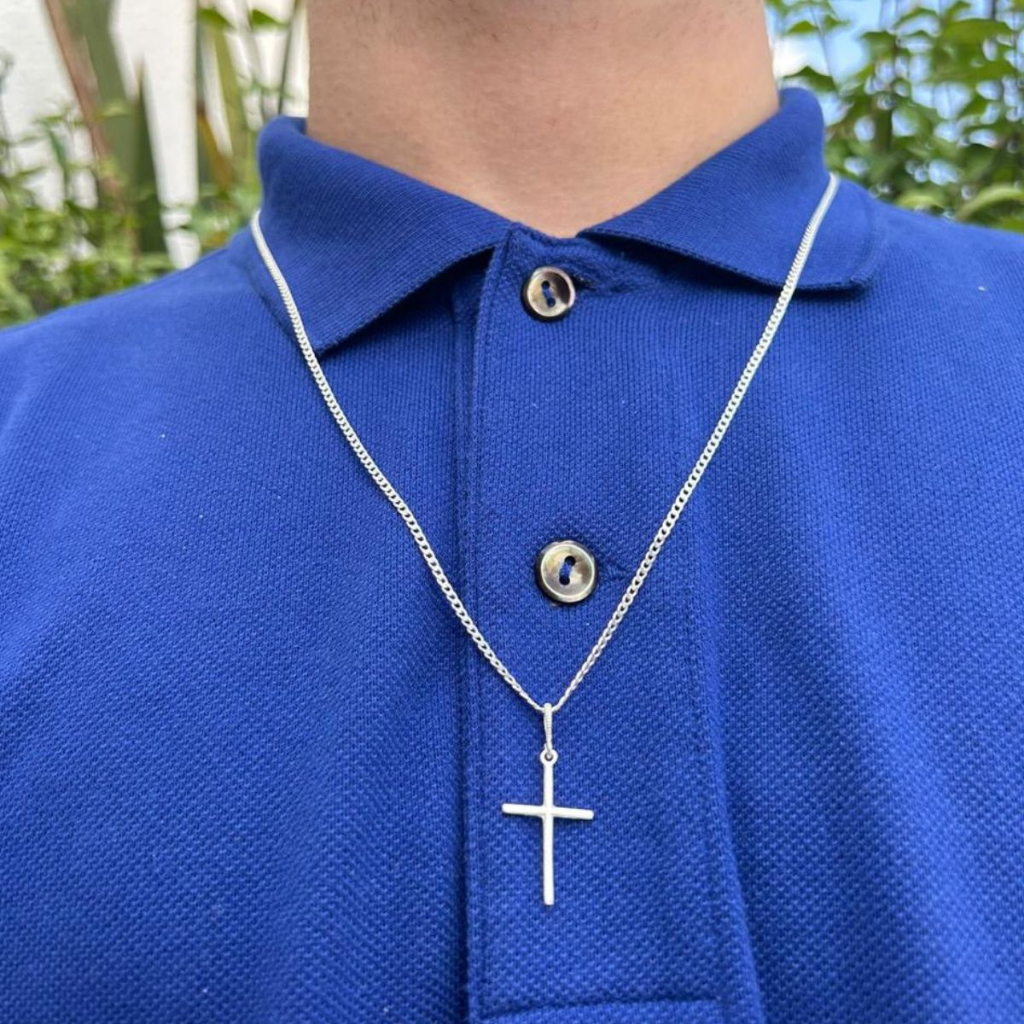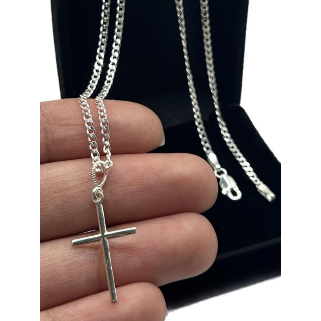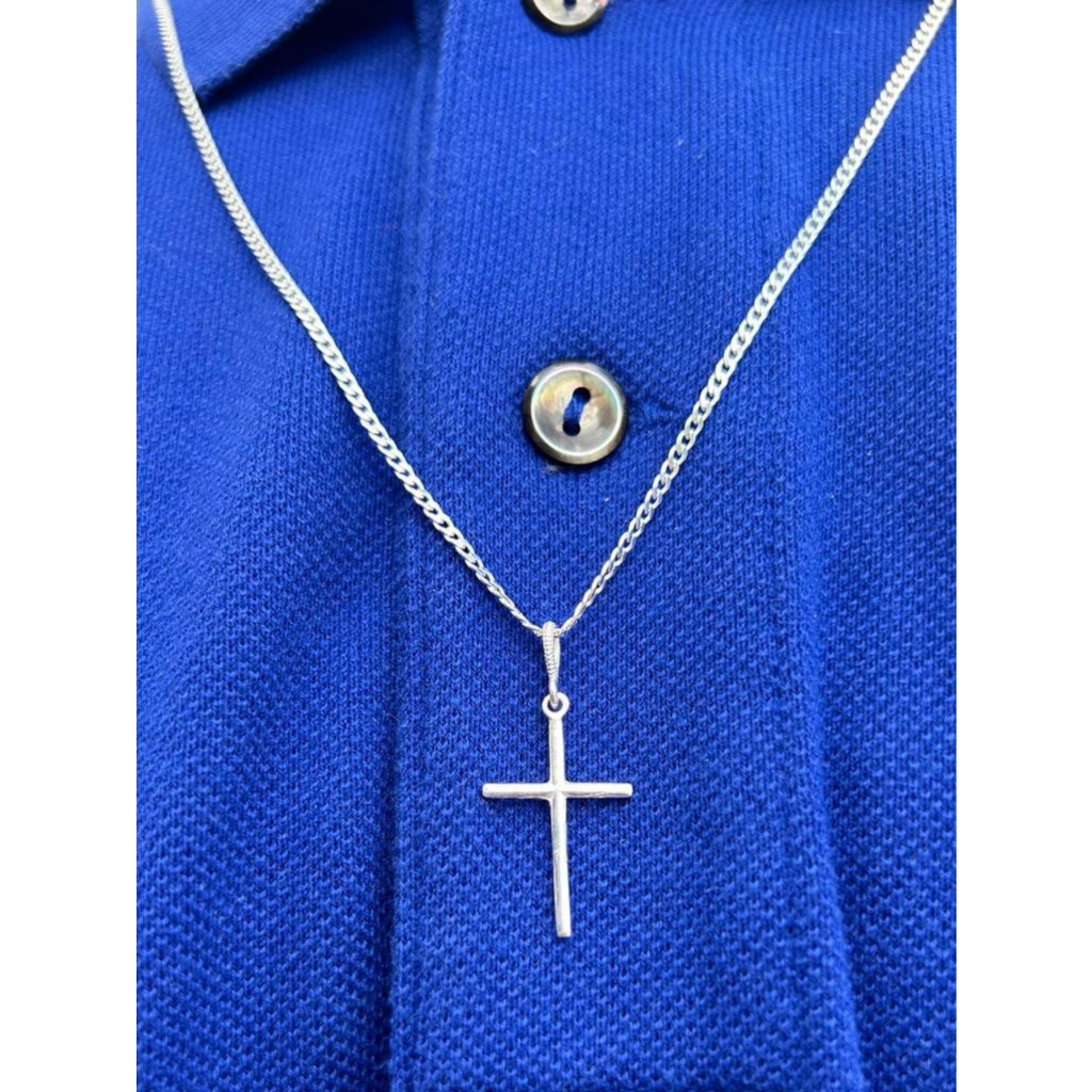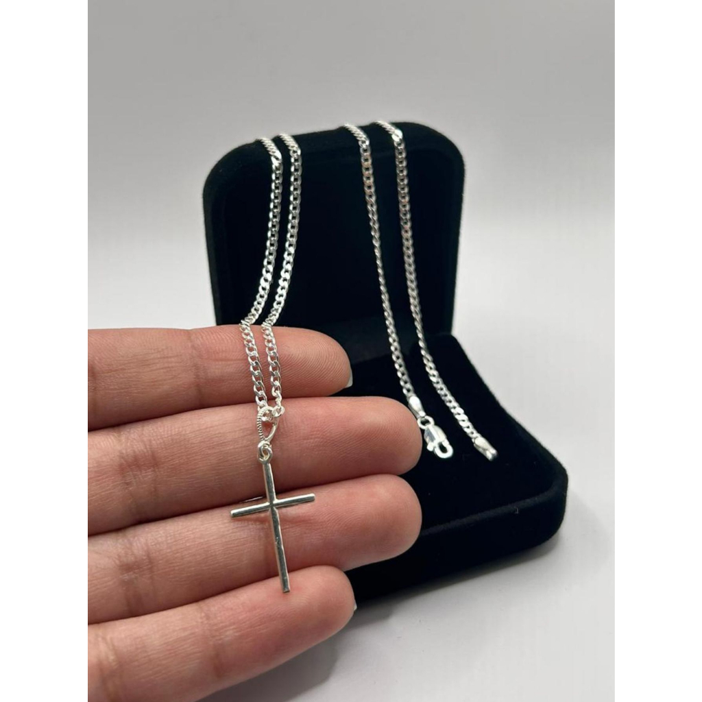 Corrente Grumet com pingente de cruz Masculino Colar Cordão totalmente em prata pura 925