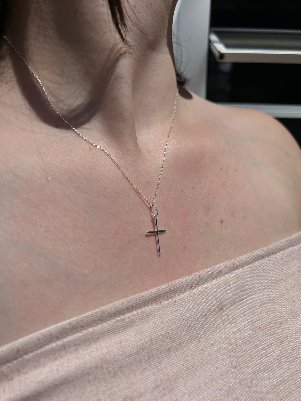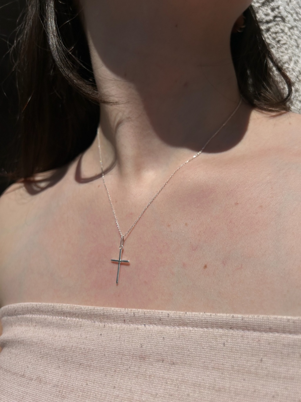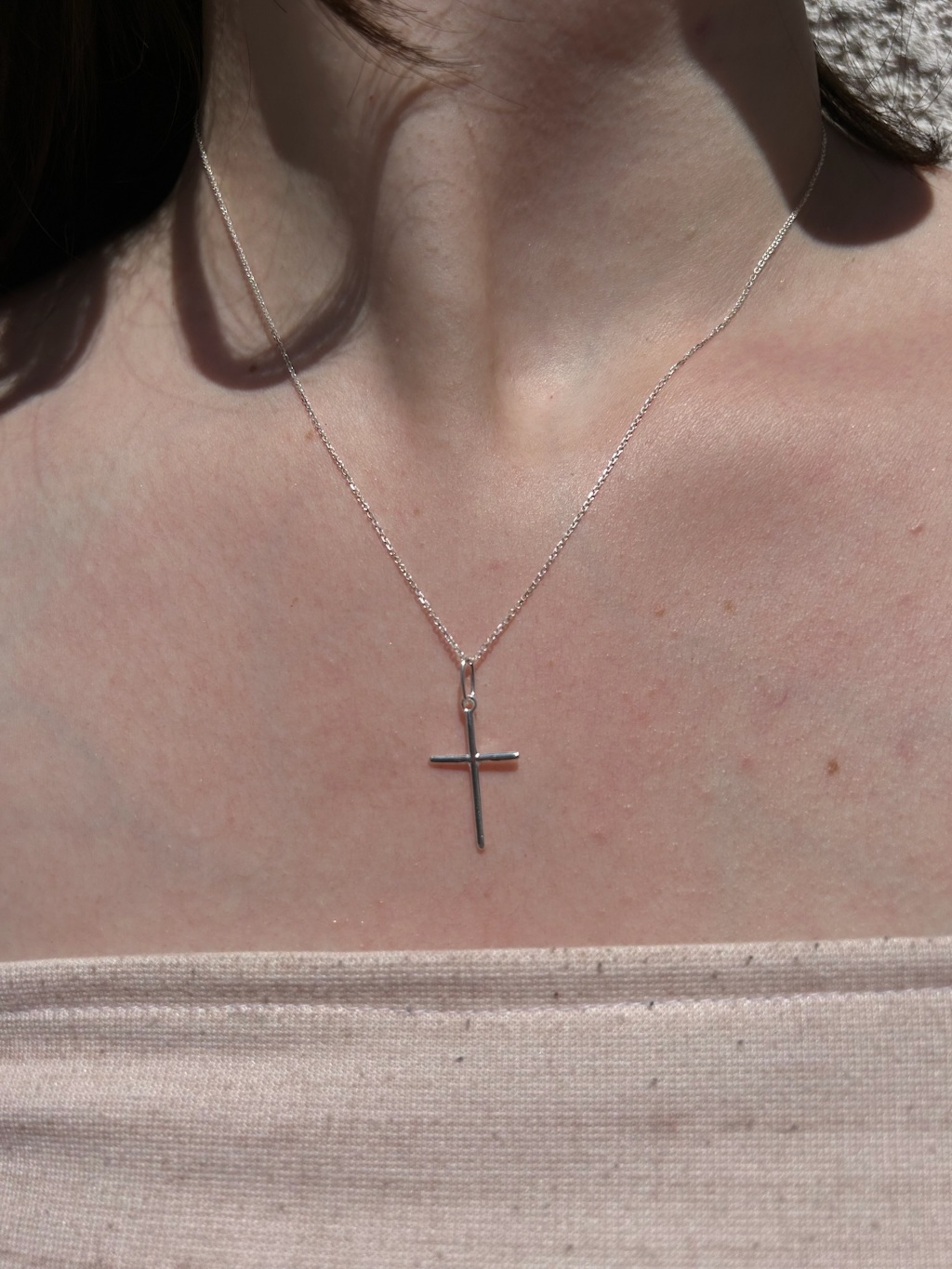 Corrente Cadeado em Prata 925 com pingente de Cruz Feminina Cruzinha