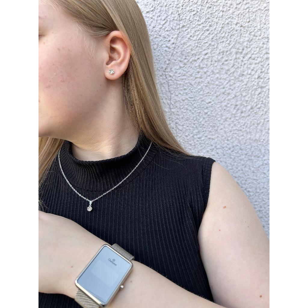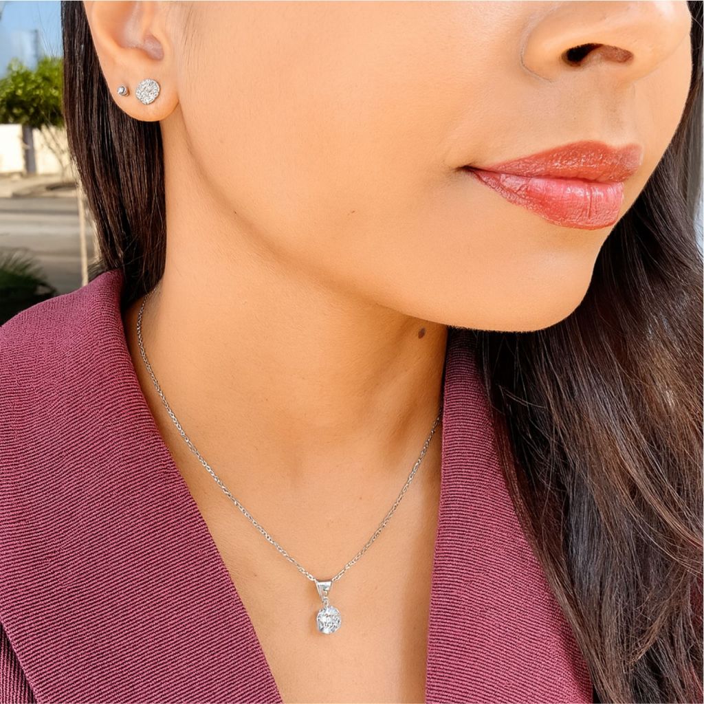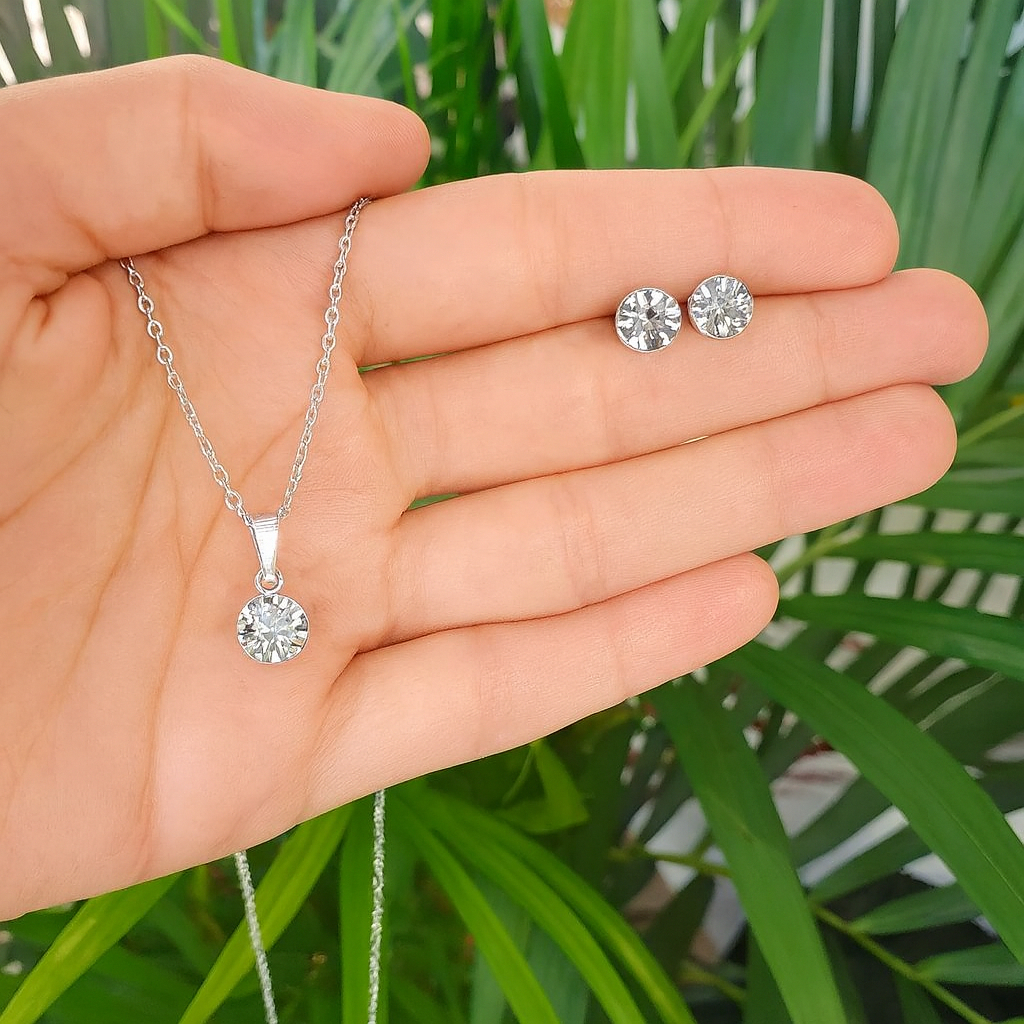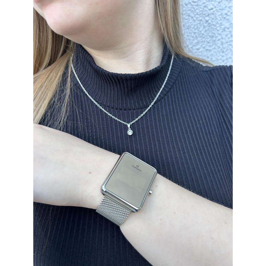 Kit Relógio Feminino Champion Original Prateado CH40080S + Colar e Brincos Folheados em Prata 925
