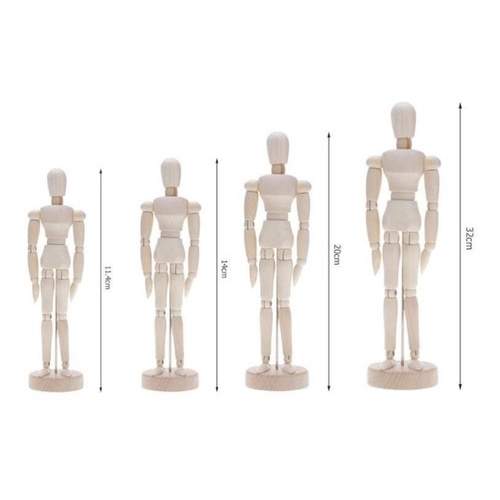 Boneco Articulado Manequim Madeira Desenho 14Cm, 20Cm e 30Cm Modelo - LUNALU