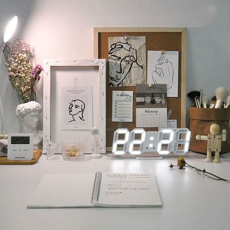 Relógio Digital 3D LED De Parede e Mesa Design Moderno Luz Noturna Decoração