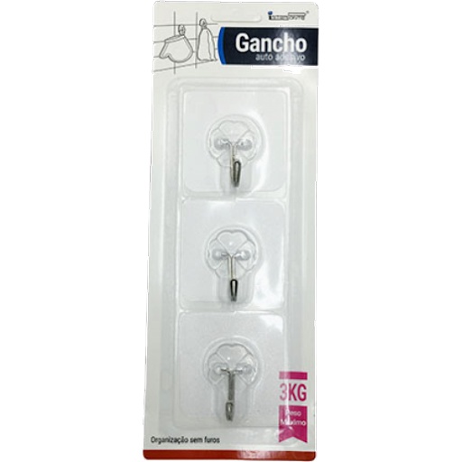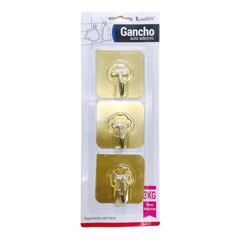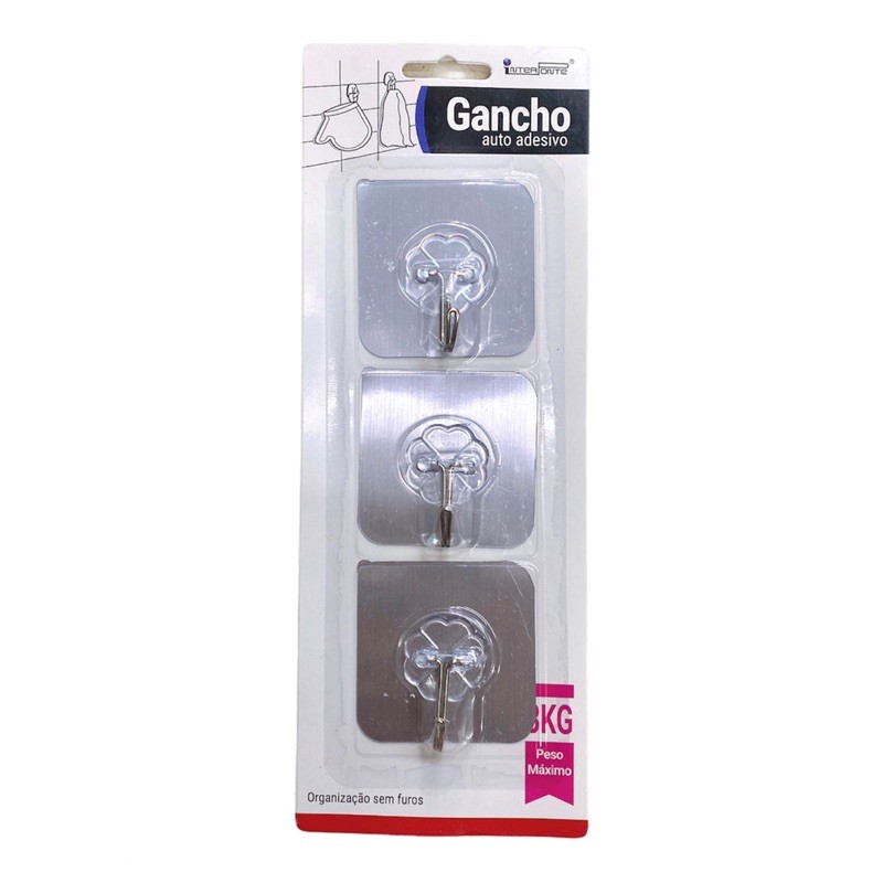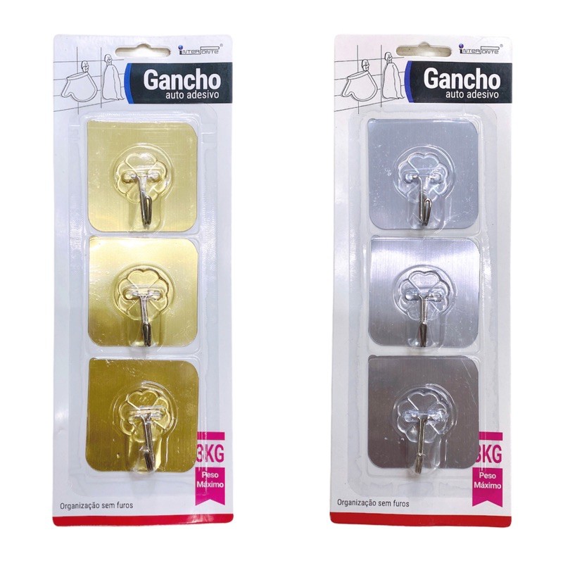 Kit 3 Ganchos Adesivos Auto-Colante Suporta 3kgs Transparente, Prata ou Dourado