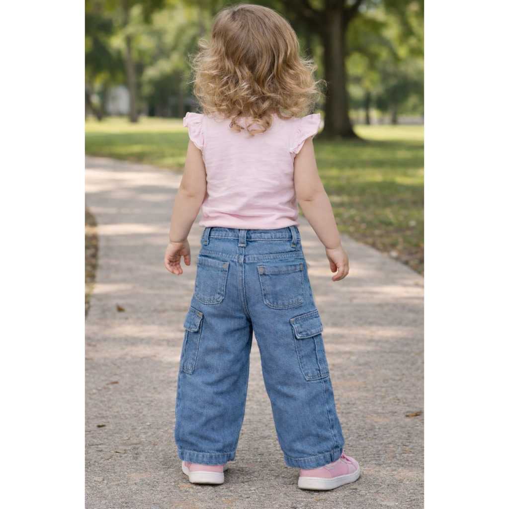 Calça wide leg feminina cargo infantil