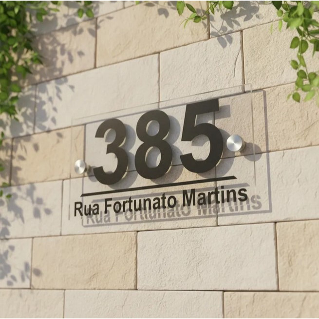 Número De Casa Em Vidro Placa Residencial Com Nome Da Rua