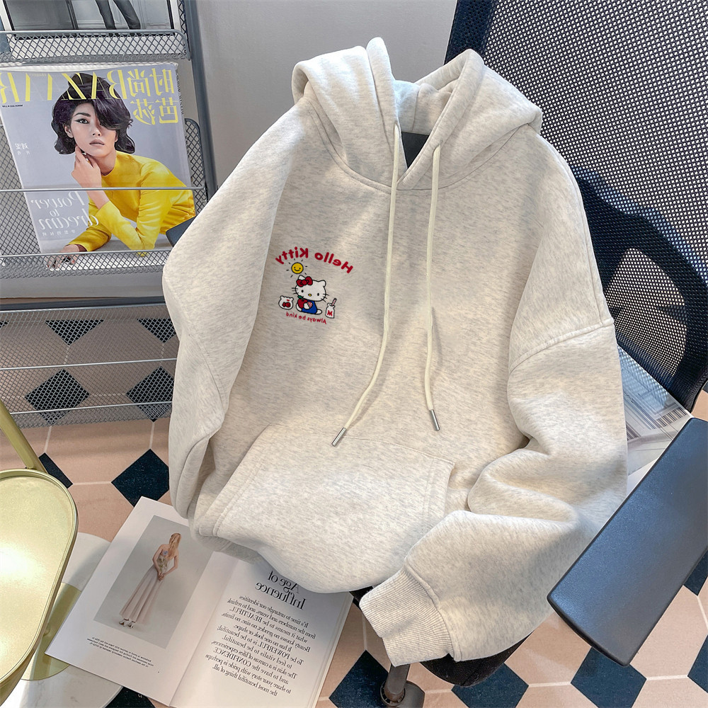 Estilo Coreano Moletom Com Capuz Feminino Novo Solto Hello Kitty Bonito Inverno Envio Rápido