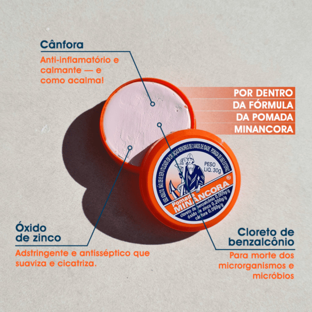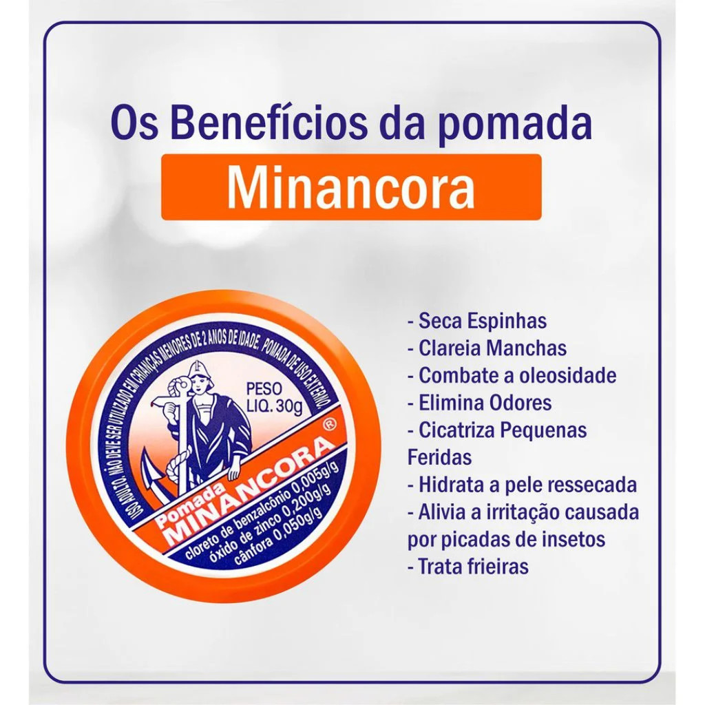 Kit 06 unidades - Pomada Minancora 30g – Cicatrizante, Antisséptico e Desodorante para Pele, Acne, Espinhas
