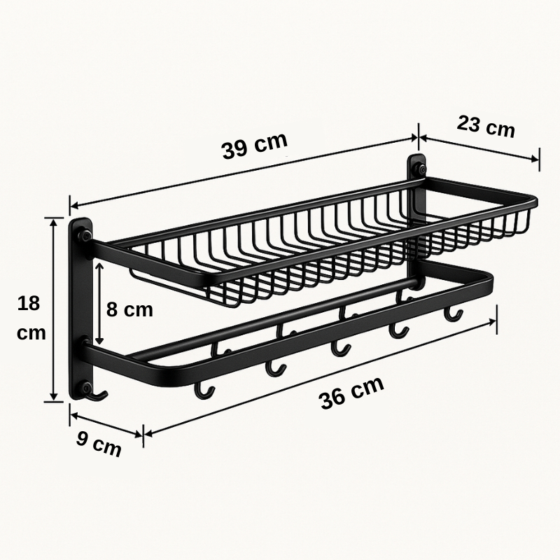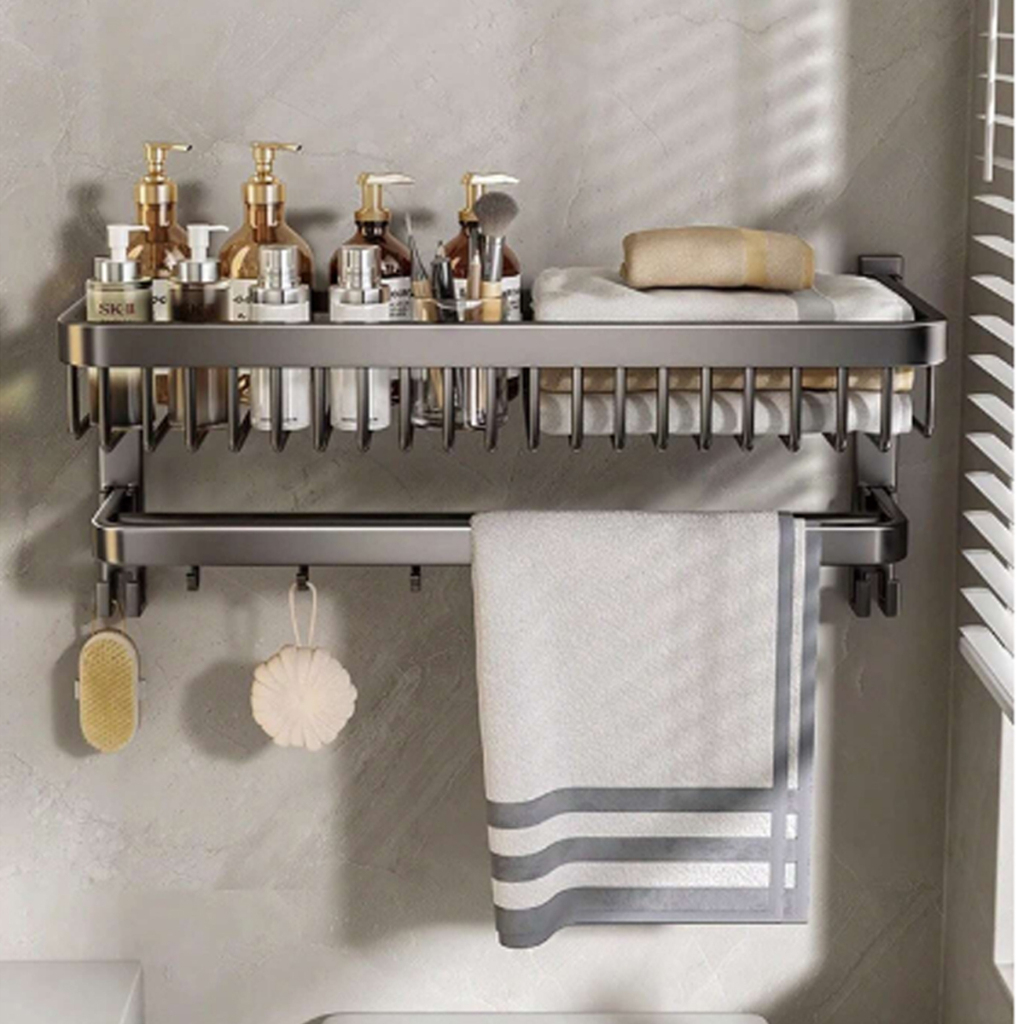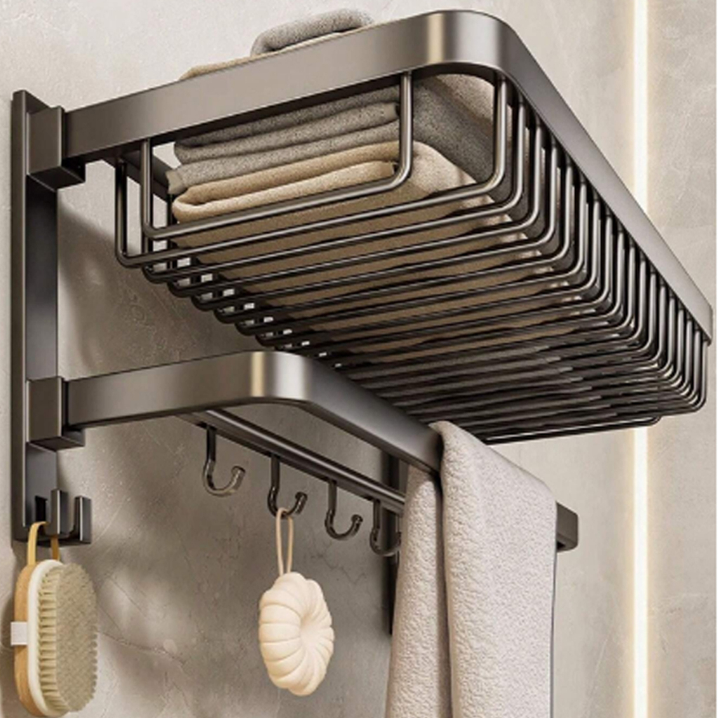 Porta Toalha Prateleira Organizador C/ Ganchos Luxo Elegante Premium Retratil 90°