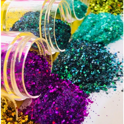Kit c/12 Pote de glitter flocado para decoração de unhas