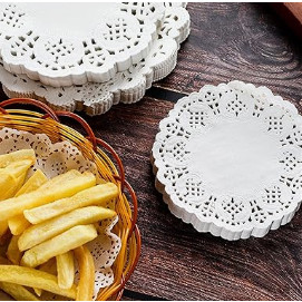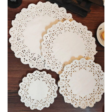 Kit 150 Toalha de Papel Rendada Redonda Doilies Sousplat Descartável Convite Decoração
