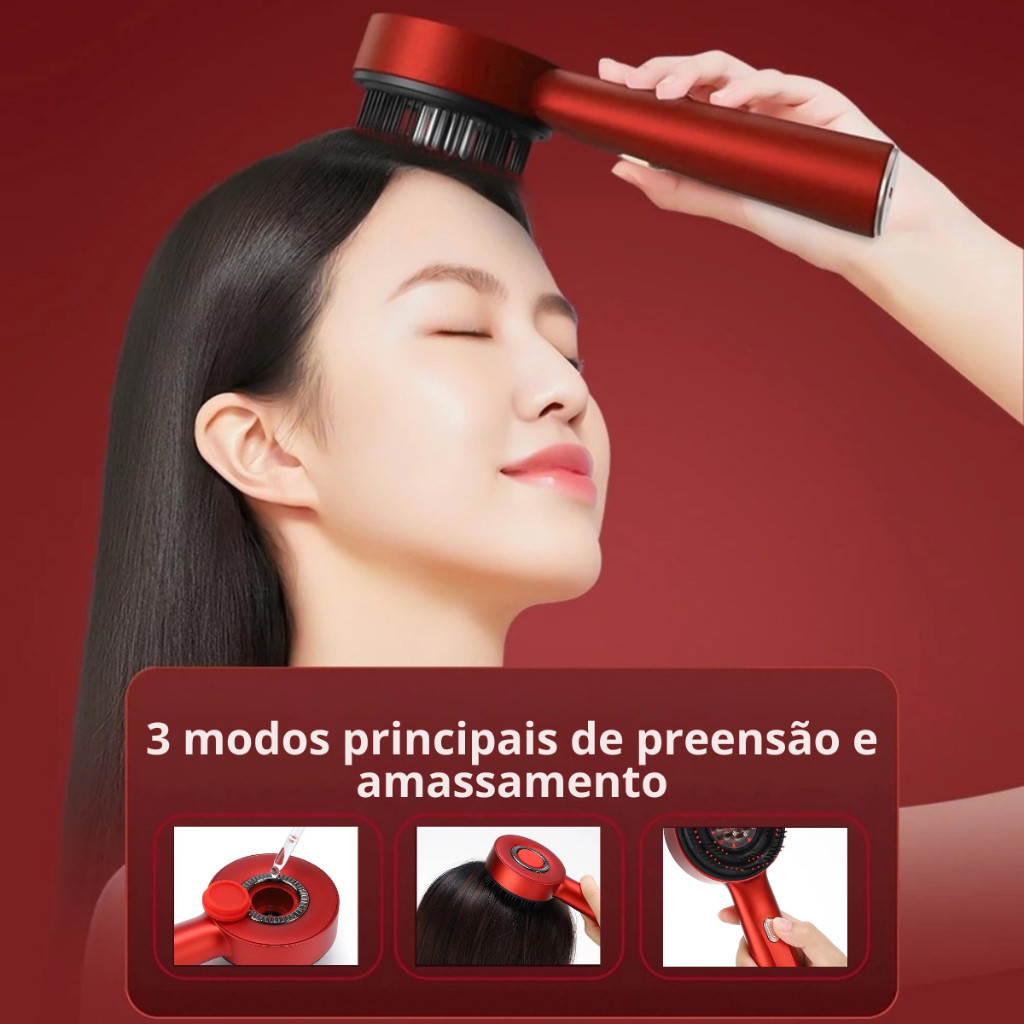 Escova Capilar Elétrica Luz Vermelha Aplicador de Óleo Crescimento e Fortalecimento dos Fios