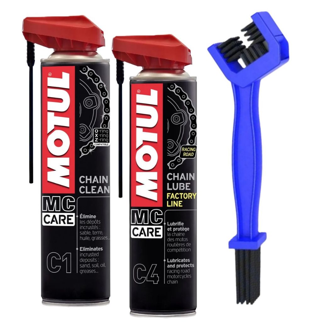 Kit Motul Limpa e Lubrifica Correntes de Transmissão C1 e C4 + Escova