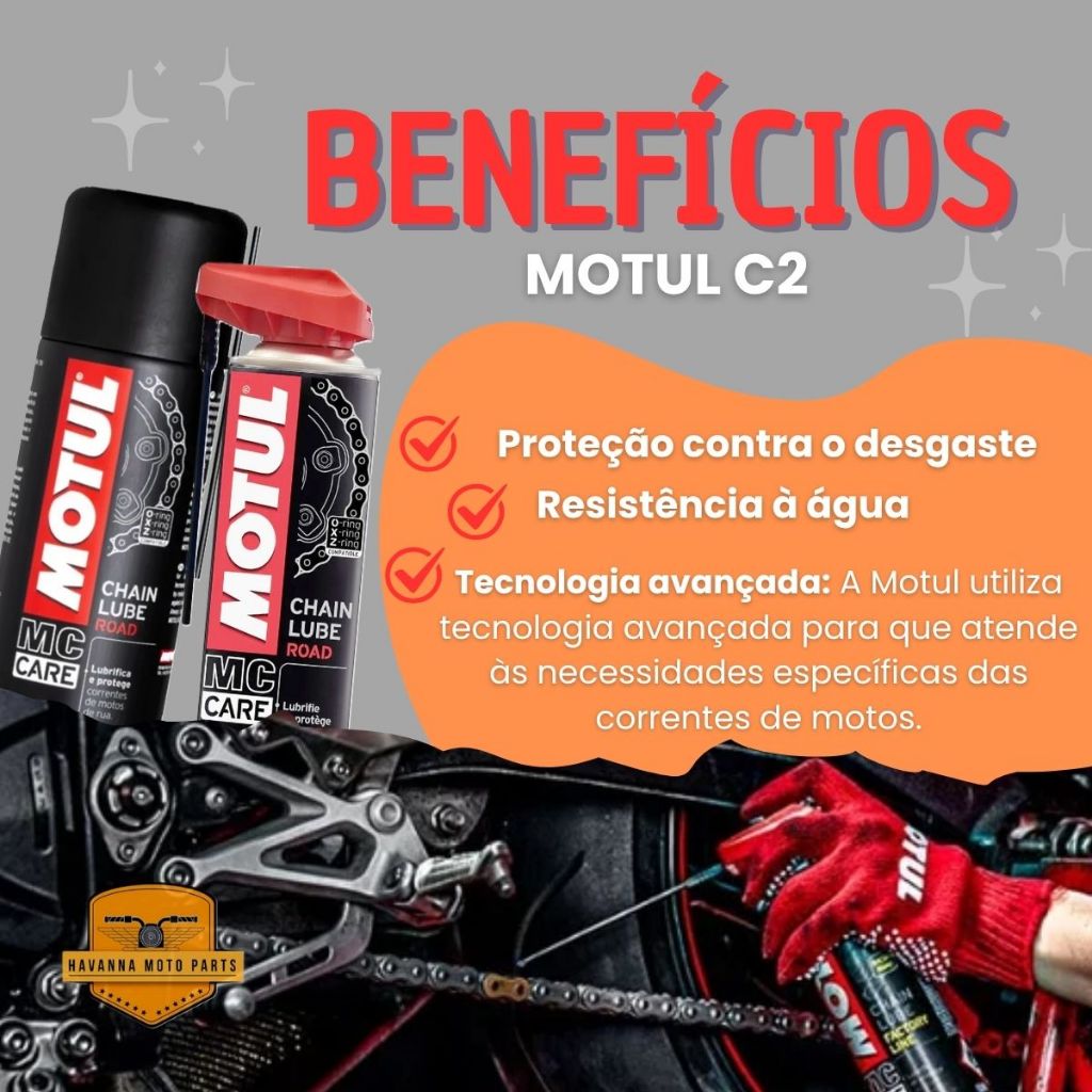 Lubrificante de Correntes Motul C2 Plus 200ml Chain Lube + Escovinha de Limpeza