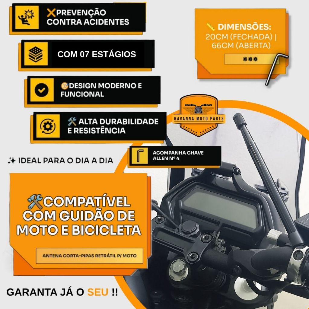 Antena Corta Pipa Moto Universal Retratil Anti Cerol M5b