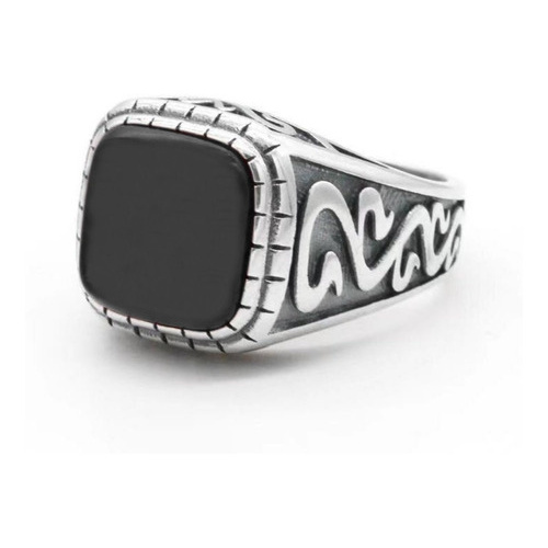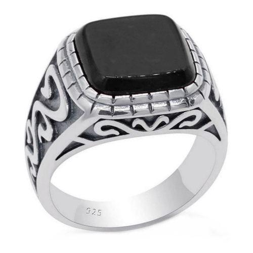 Anel Masculino Esculpido Prata 925 Black Onix Homem