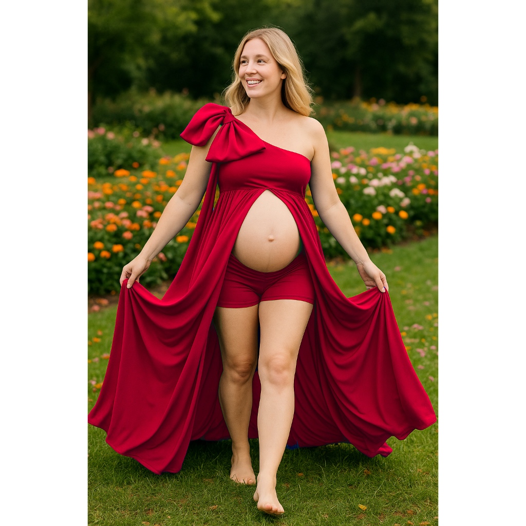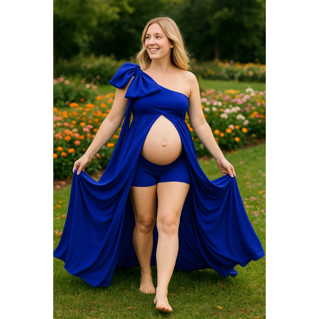Vestido Gestante Para Foto Ombro Único Com Laço E Shorts G26