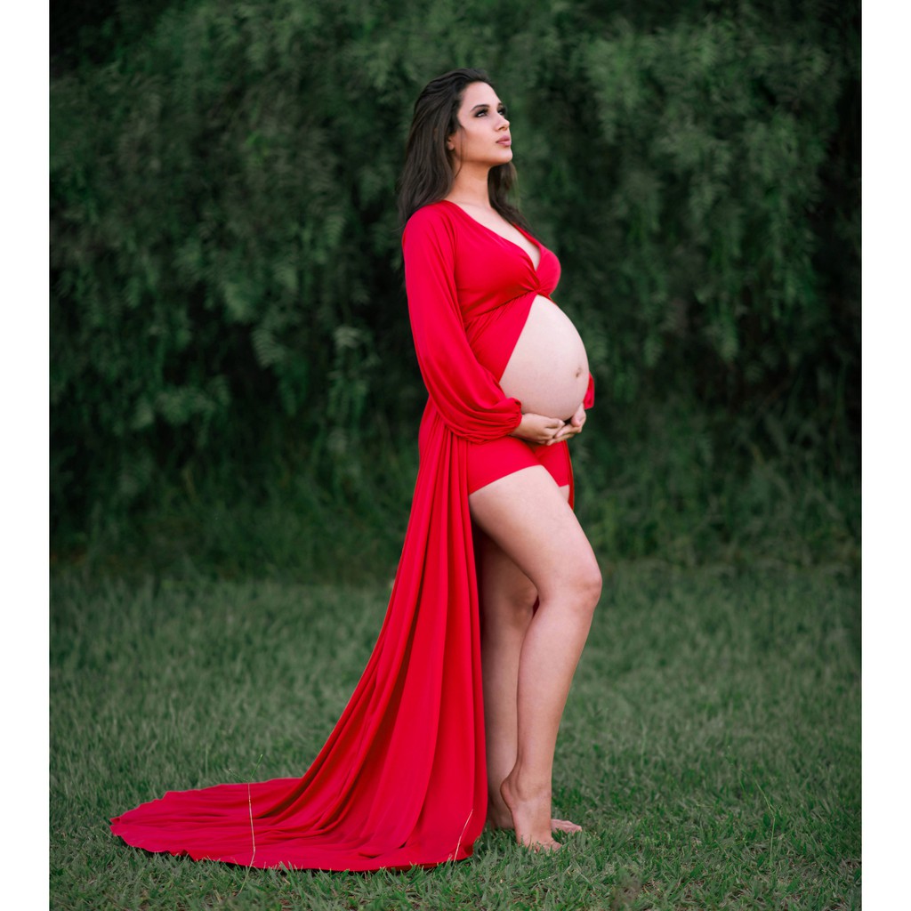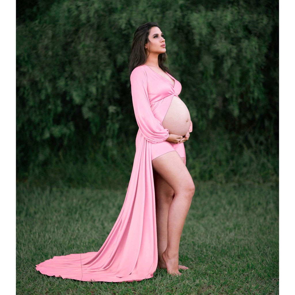 Vestido Gestante Para Ensaio De Fotos Com Shorts G17