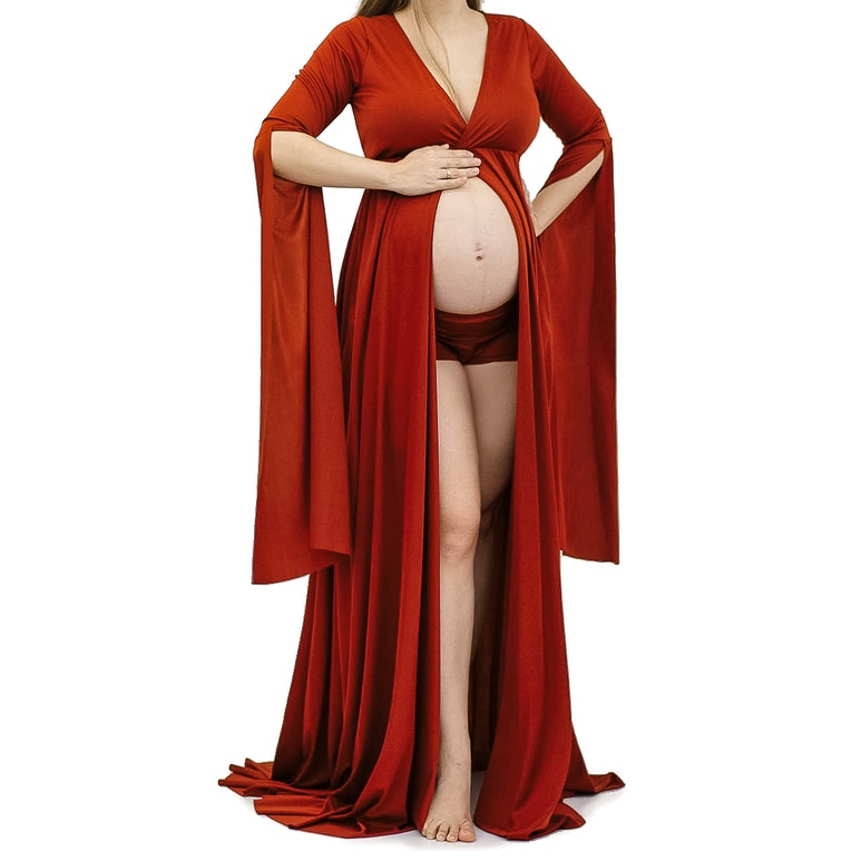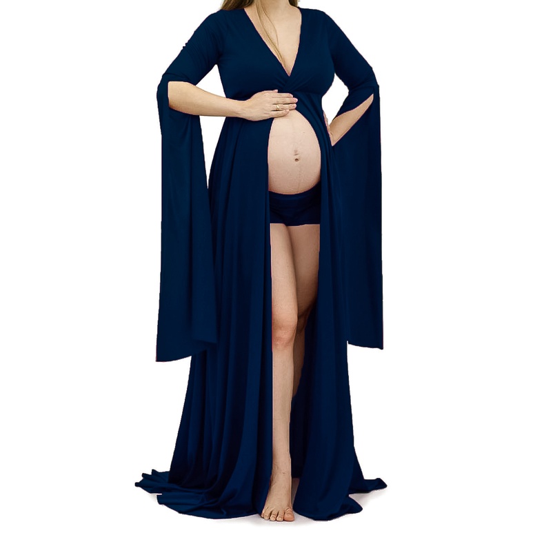 Vestido De Gestante Para Fotos, Com Shorts E Manga Longa G31