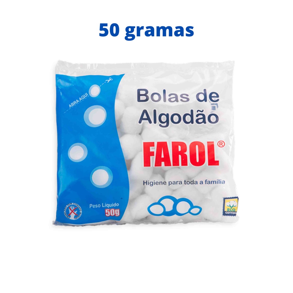 Algodão Farol Bolas 50g Limpeza Facil Remove Maquiagem Higiene Bebês Manicure Super Absorvente