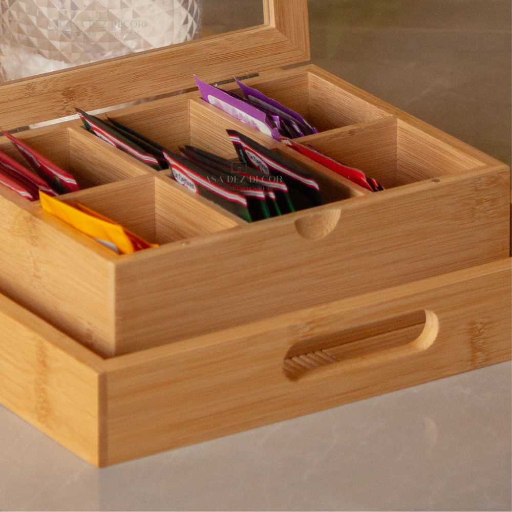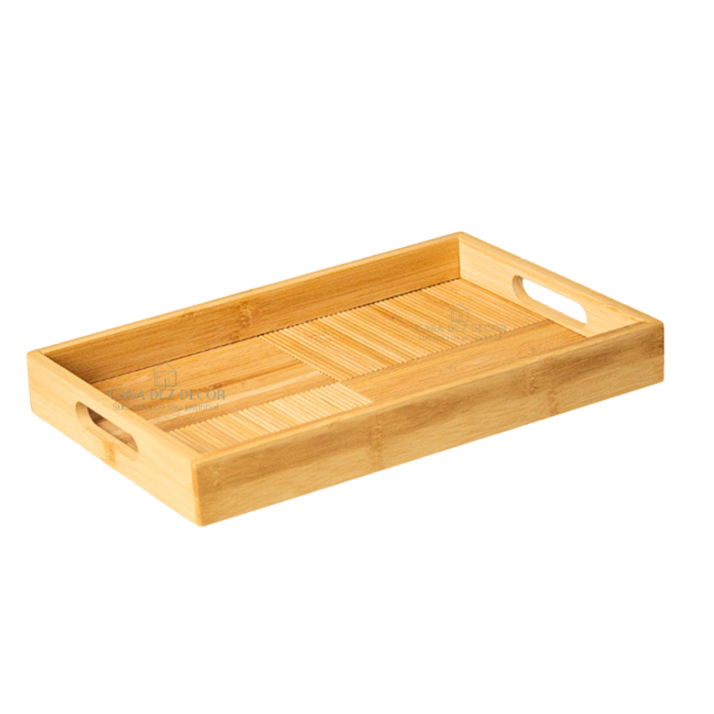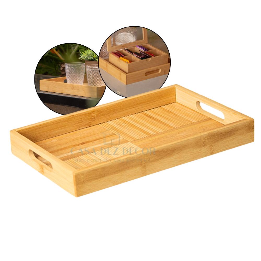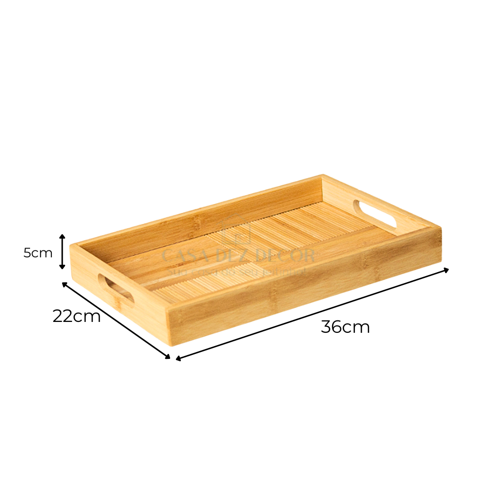 Bandeja Bambu Madeira Retangular 36cm x 22cm x 5cm com Alça Reta Decorativo Elegante Café da Manhã