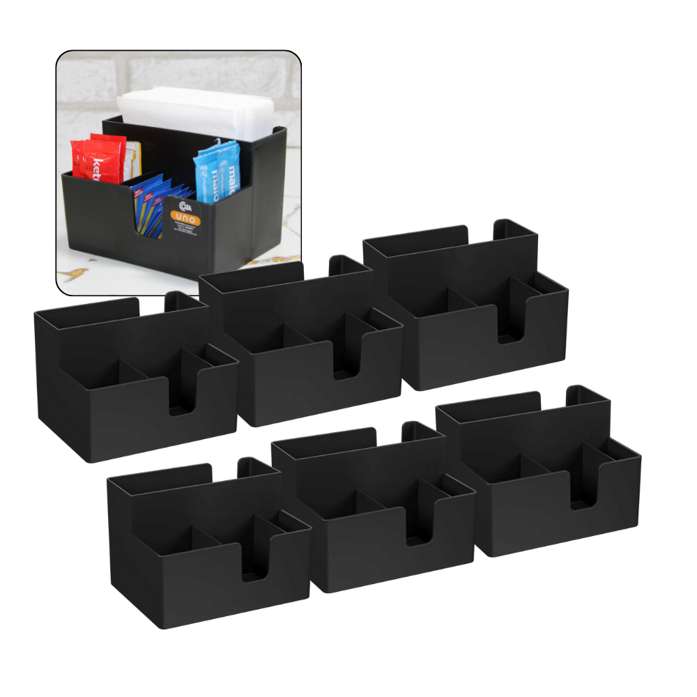 Kit 6 Porta Guardanapo Porta Sachê e Colher 4 Divisões Plástico Resistente Lanchonete Restaurante