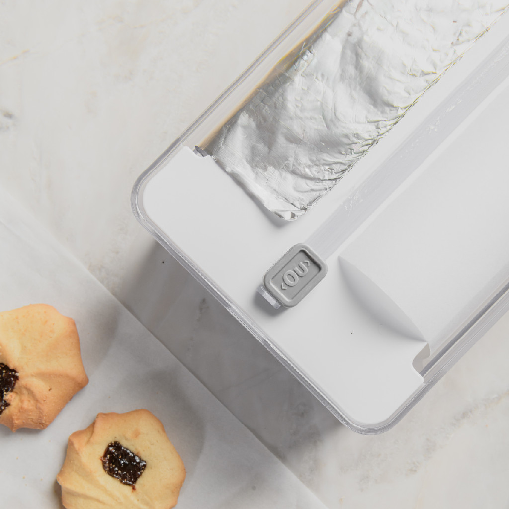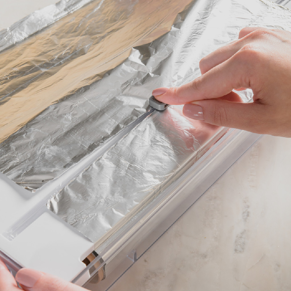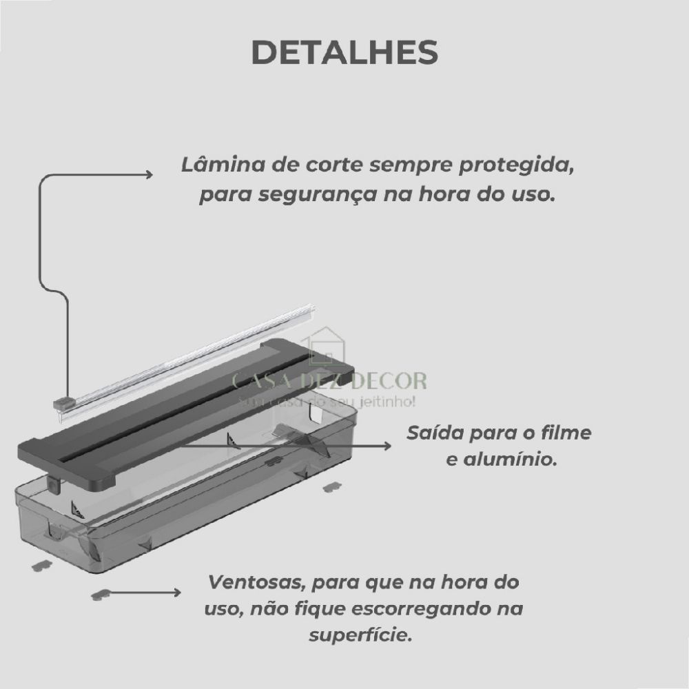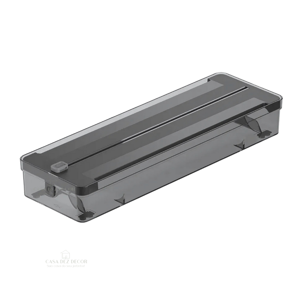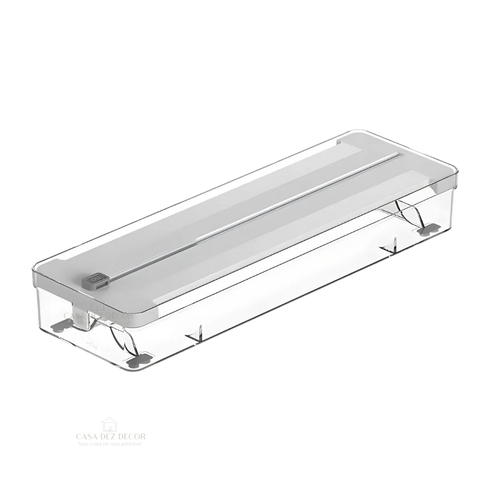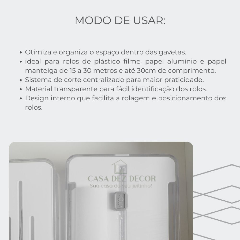 Organizador de Rolos Duplo e Cortador de Plástico Filme Papel Alumínio Manteiga Ou 37cm x 12cm