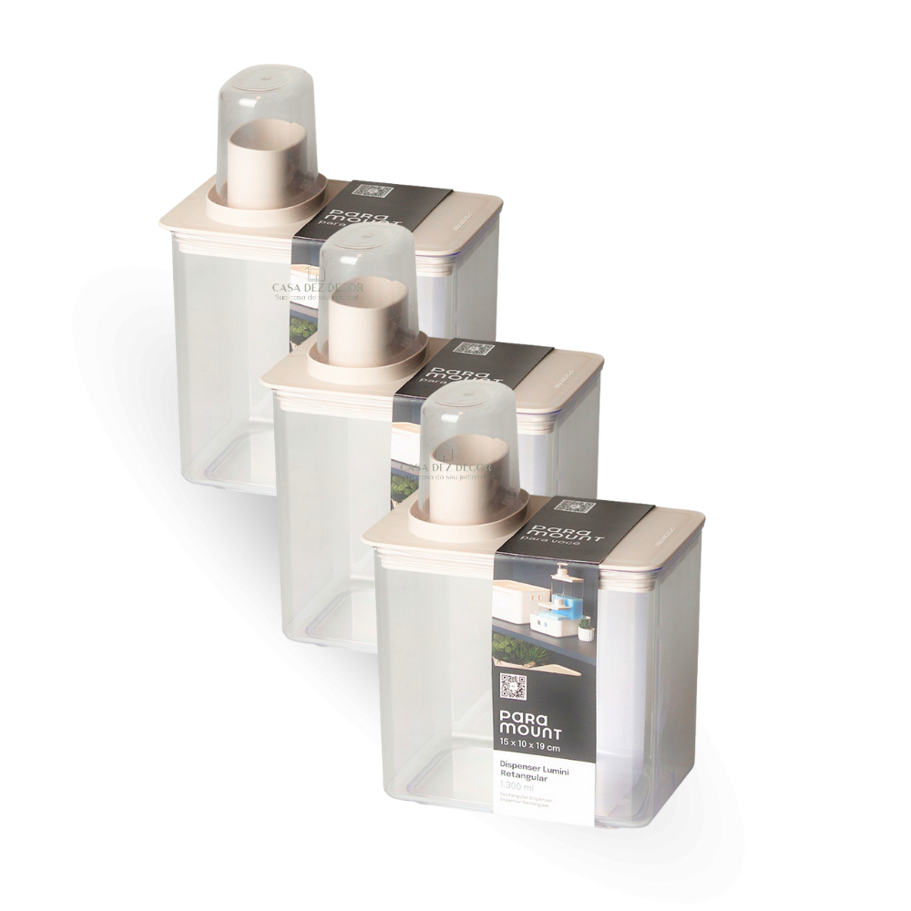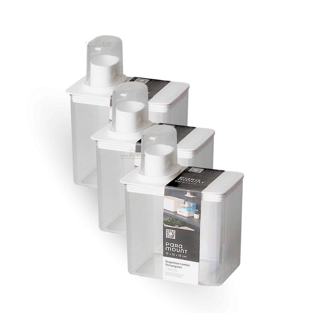 Kit 3 Dispenser Pote Medidor Hermético Produtos Limpeza Organizador de Lavanderia Fly 1,3L Paramount