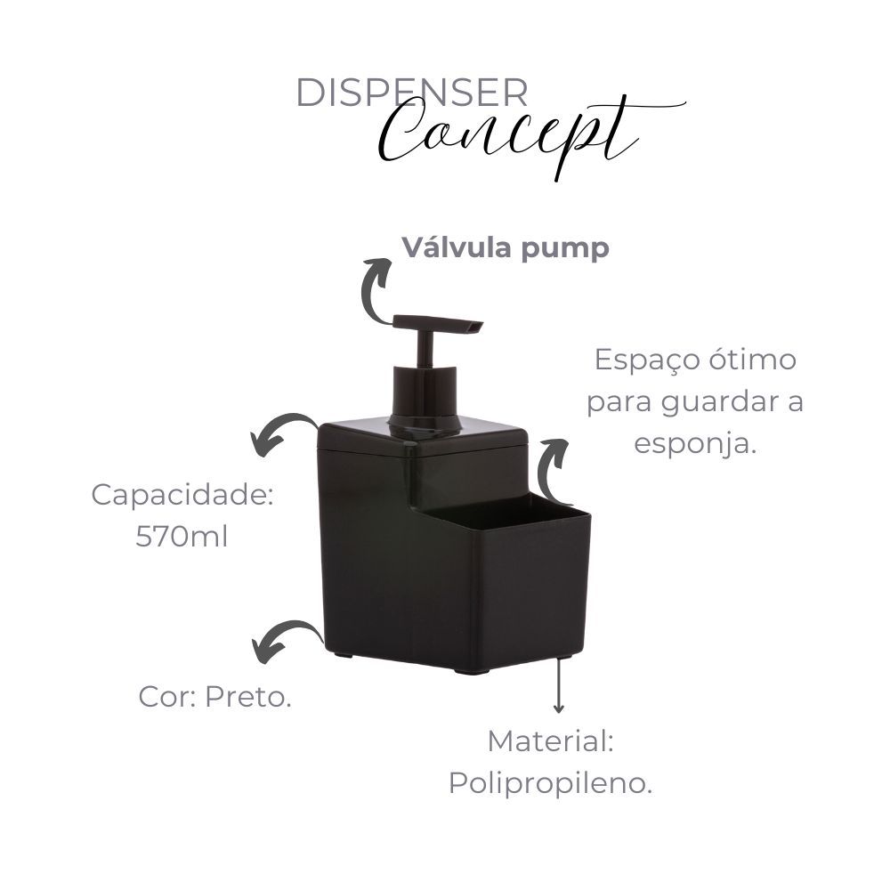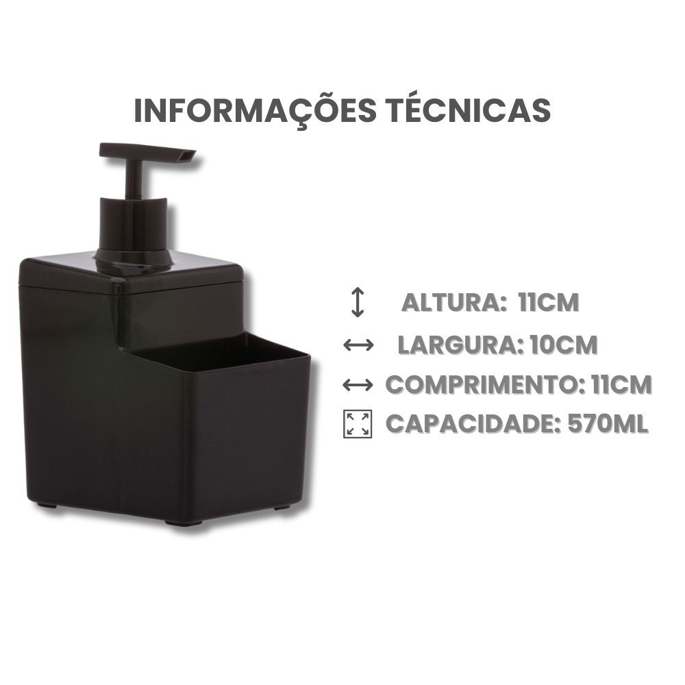 Dispenser de Cozinha Porta Detergente Sabonete Liquido Álcool Gel Dosador Válvula Pump 570ml Premium