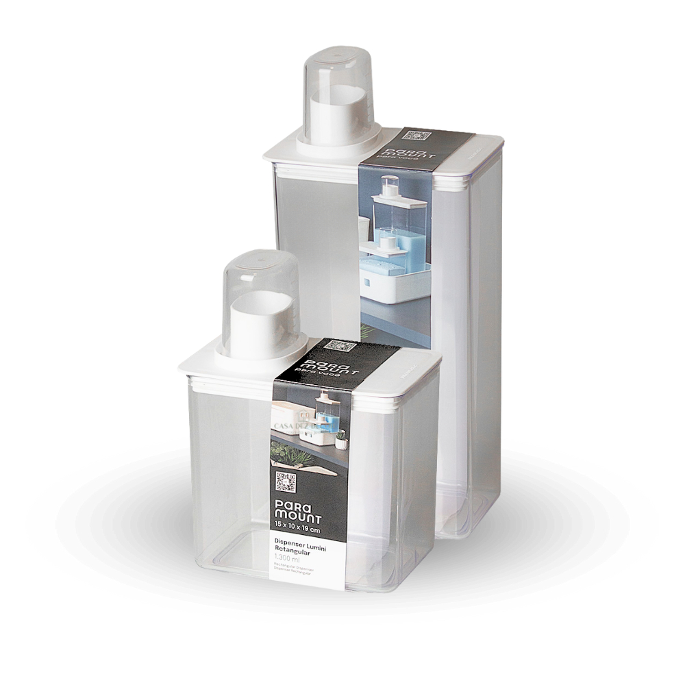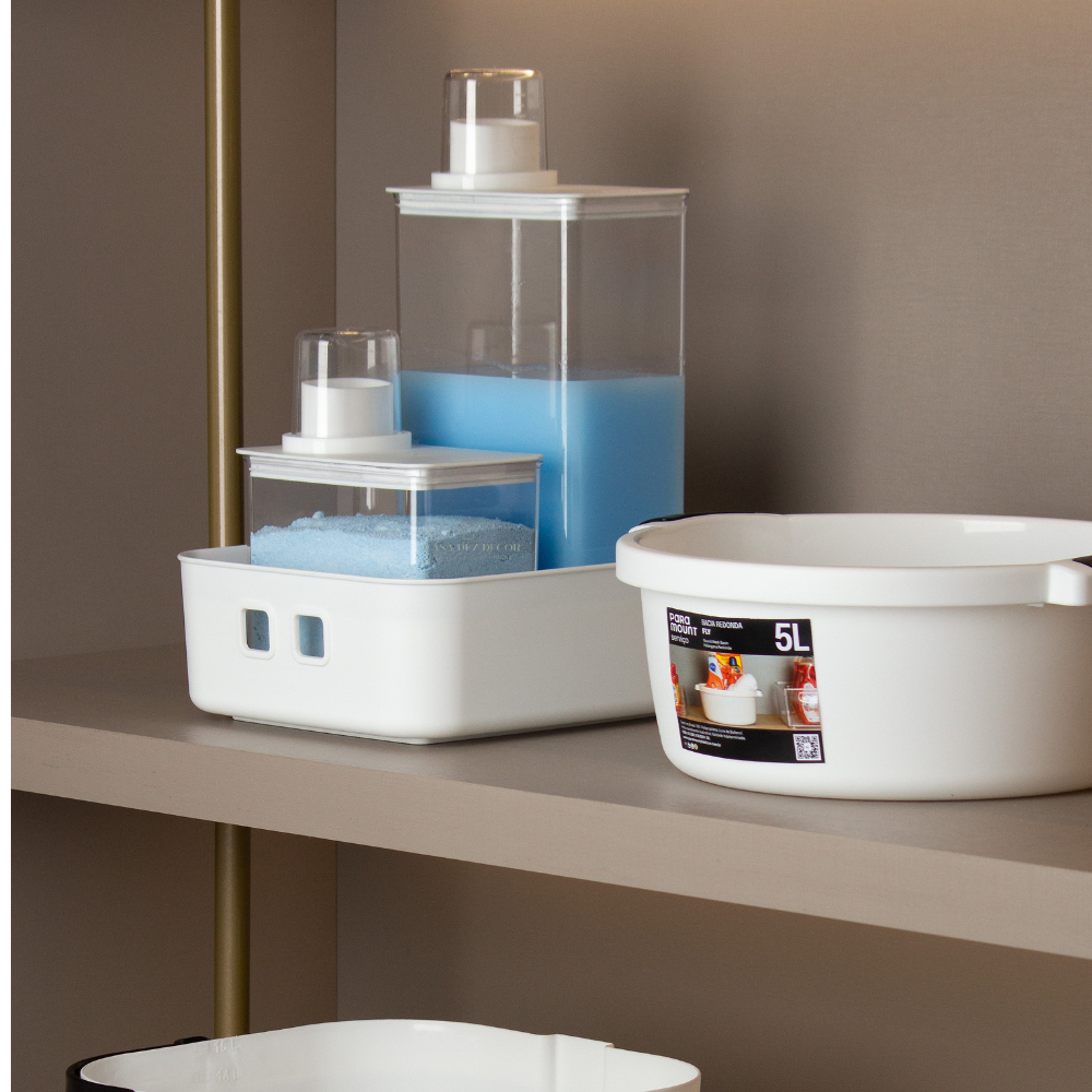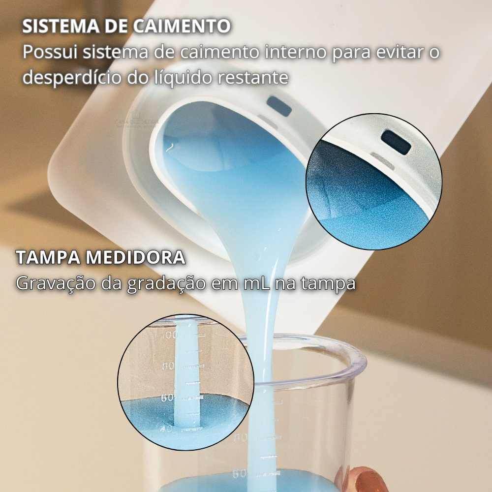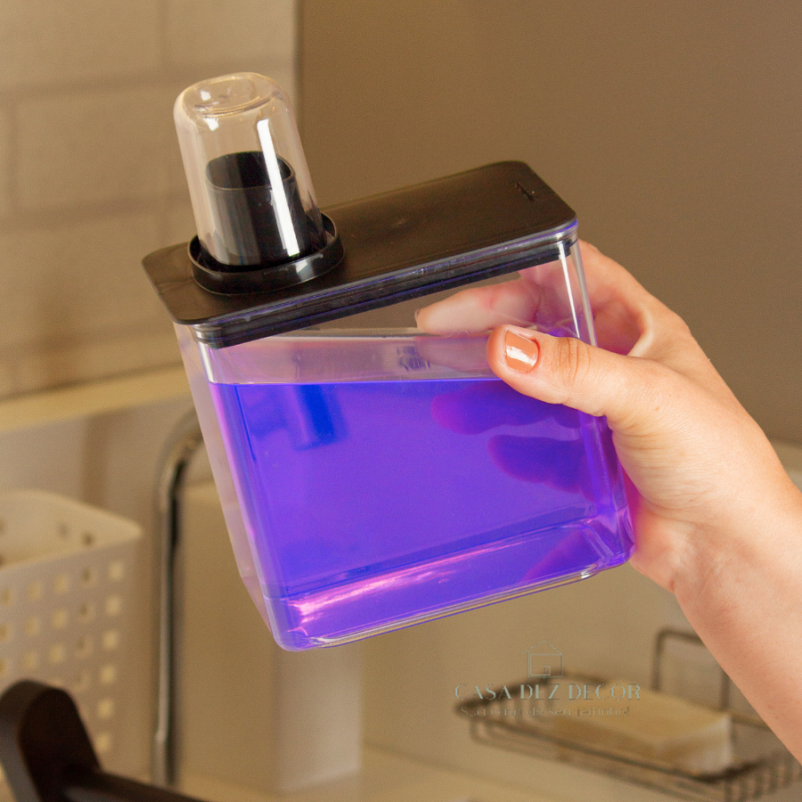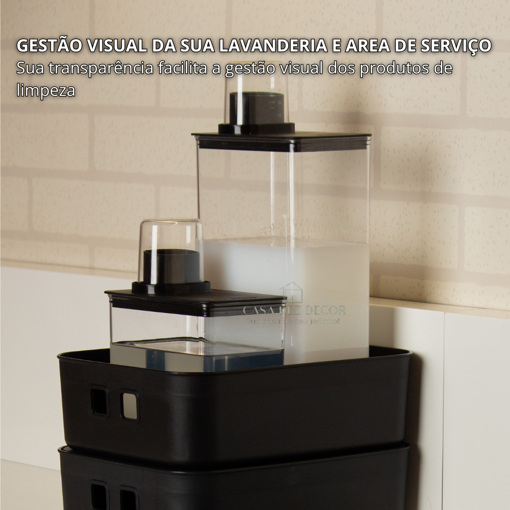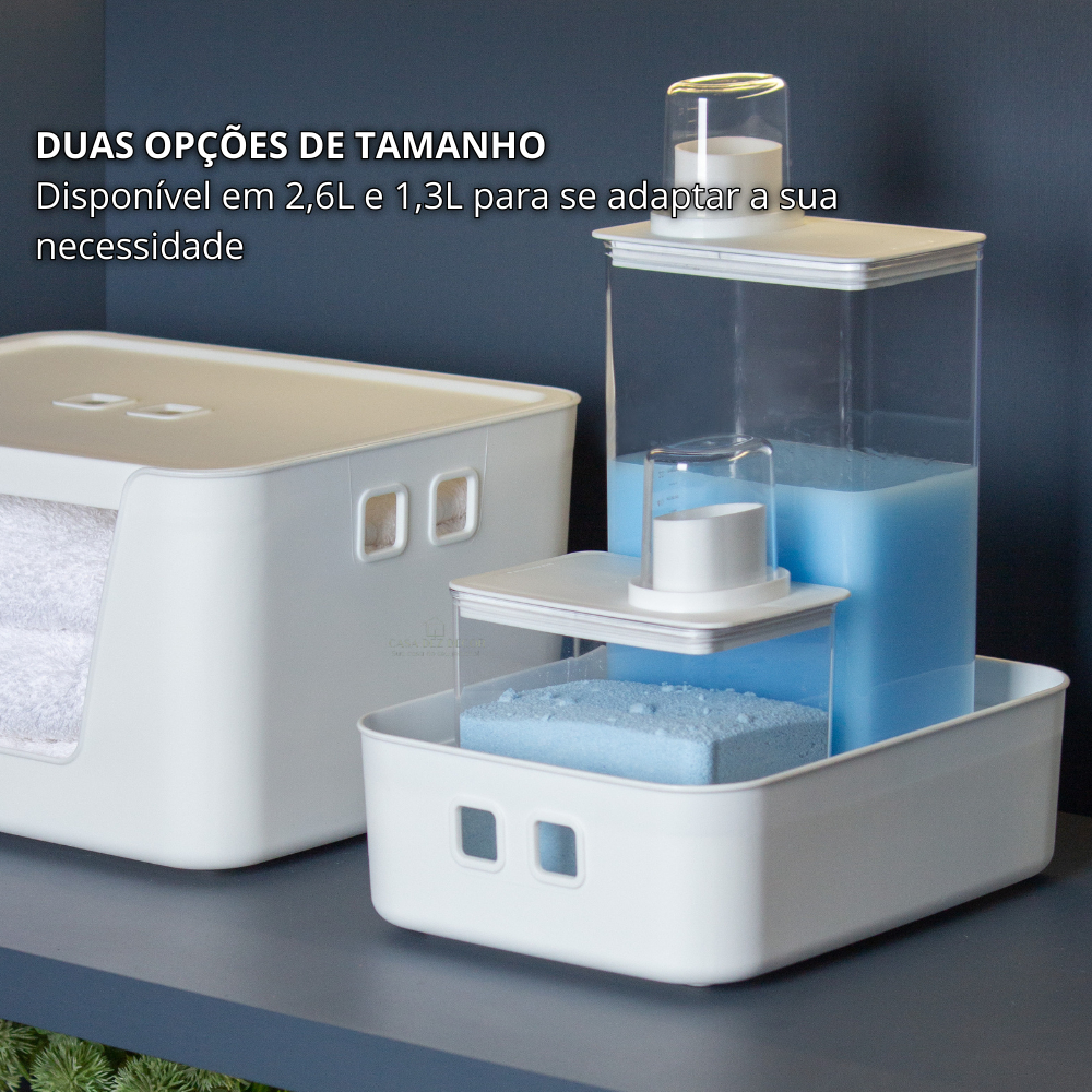 Kit Dispenser Organizador de Lavanderia 1,3l + 2,6L Porta Sabão Sabonete Liquido Amaciante Alvejante