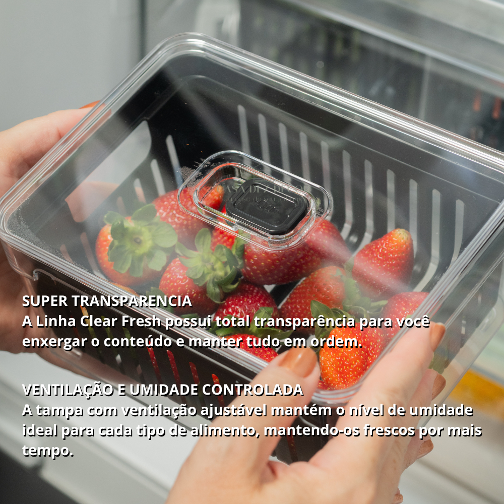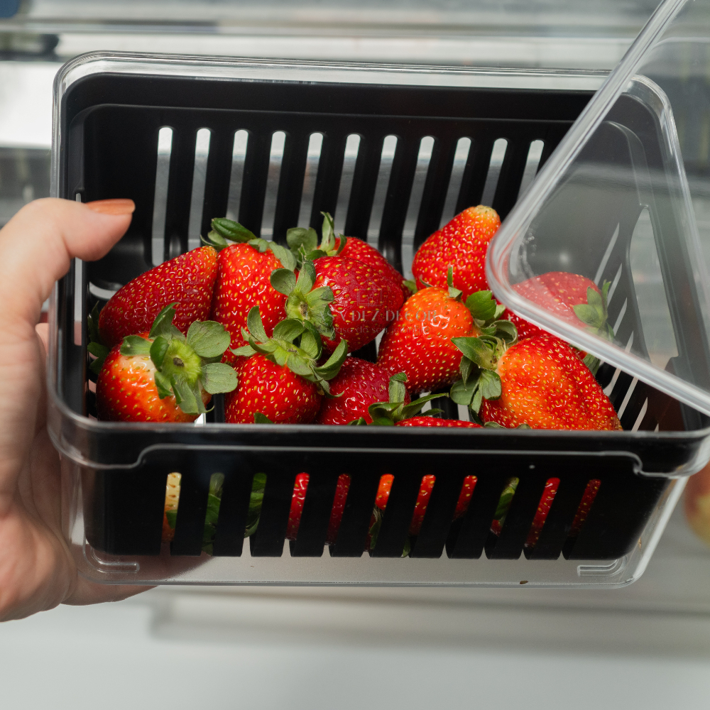 Kit 4 Organizadores de Geladeira 2,2L Preto de Acrílico Cesta Drenagem Frutas Saladas Ou Clear Fresh