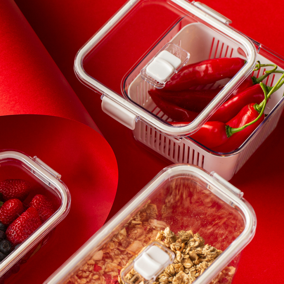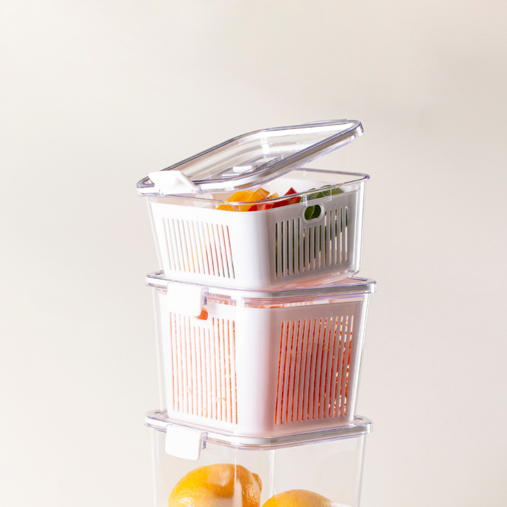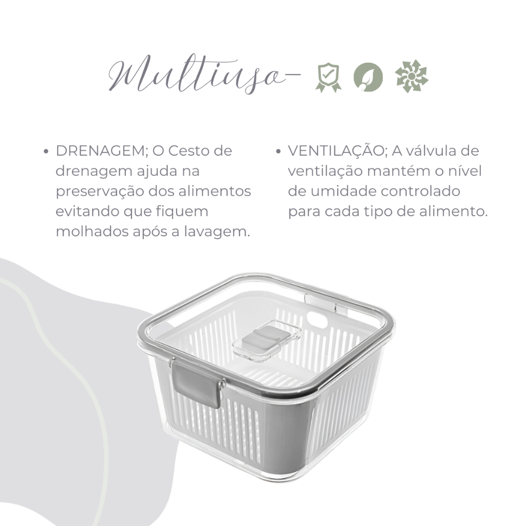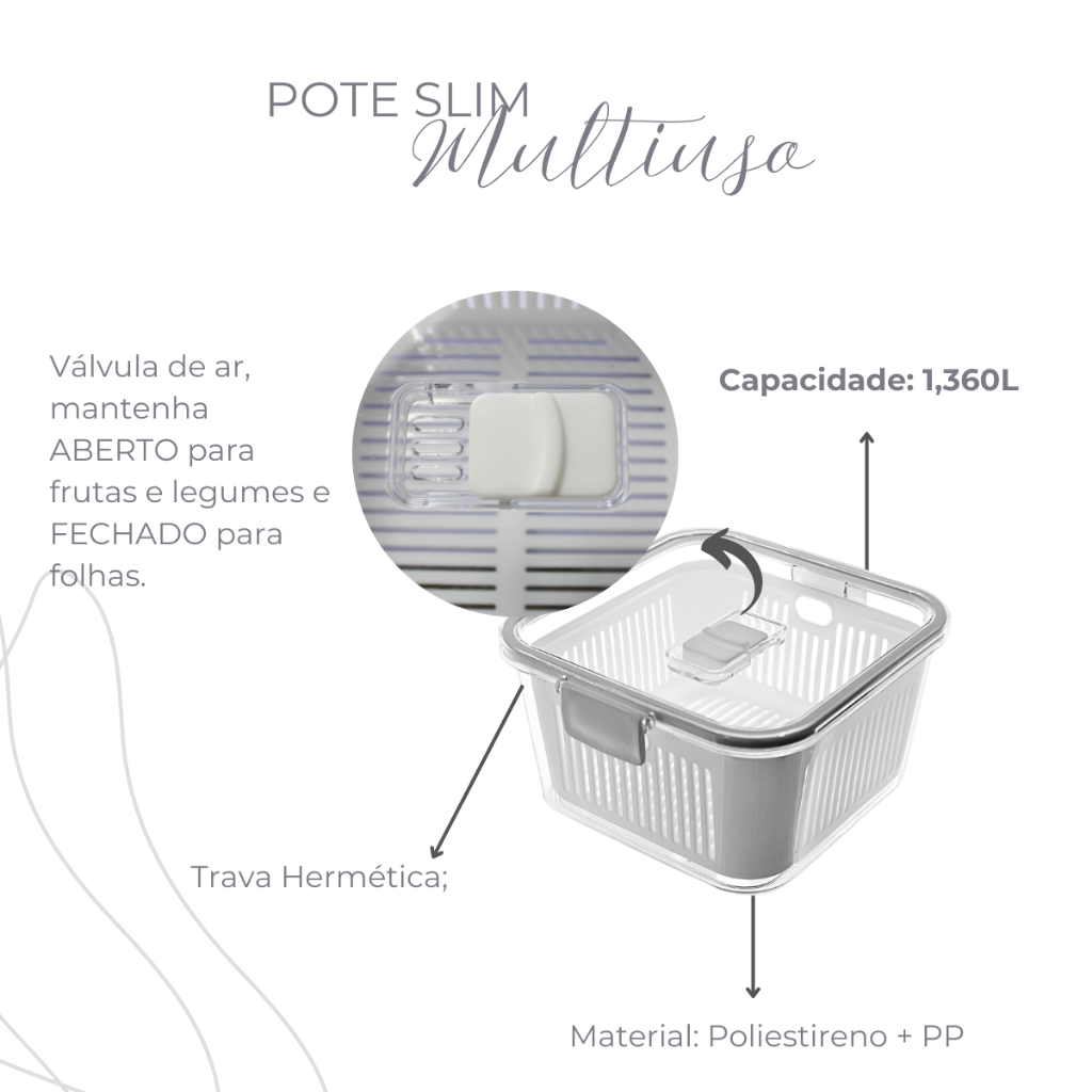 Pote Hermético Acrílico 1360ml Tampa com Trava Cesto para Frutas Legume Salada Tempero Conserva