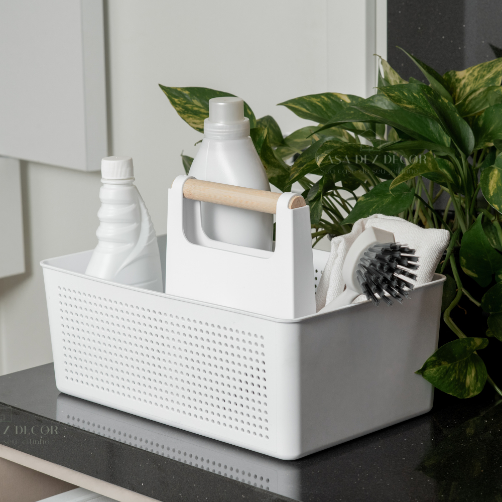 Cesto Organizador de Lavanderia Com Alça 8L Multiuso Para Produtos de Limpeza Armário