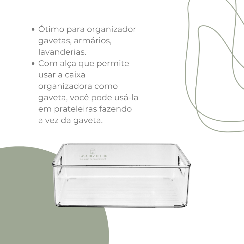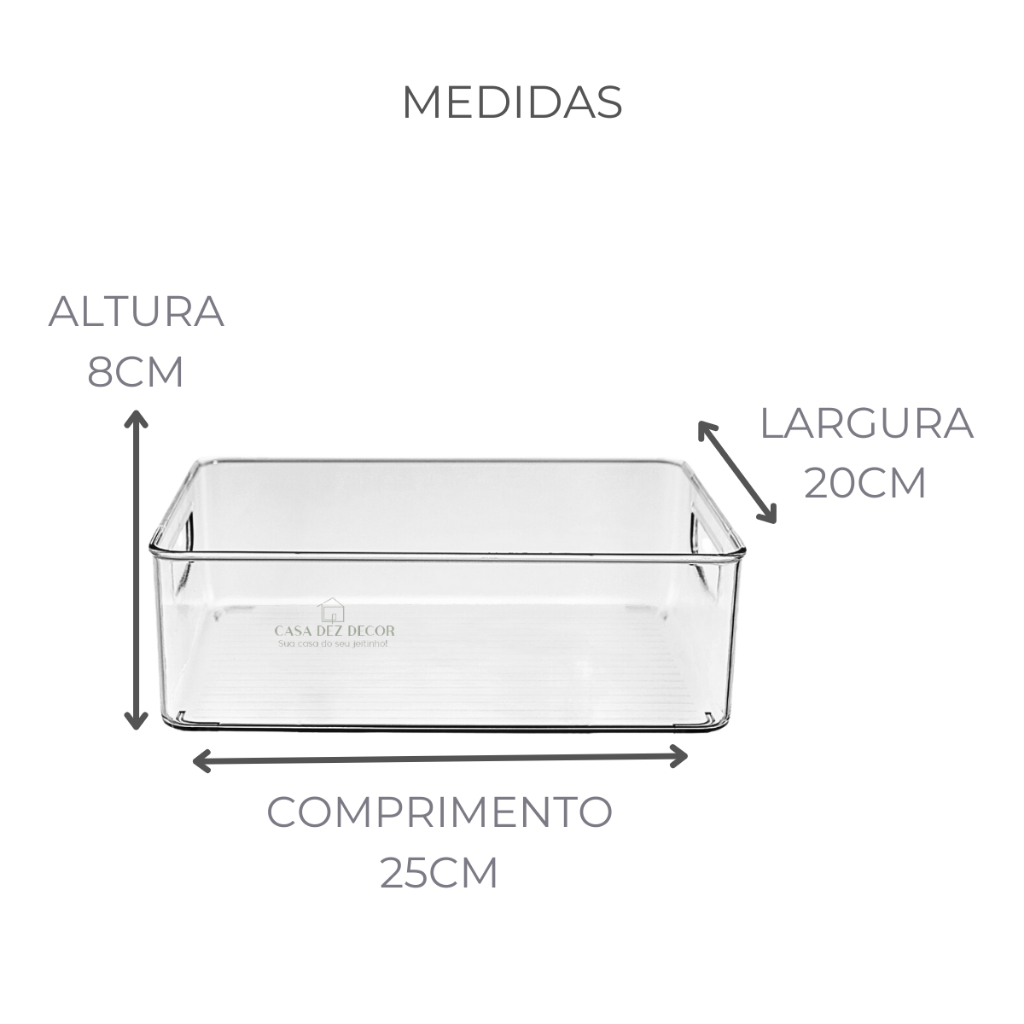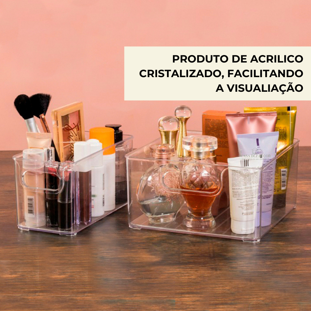 2 Cesto Organizador Multiuso de Acrilico Organização de Geladeira Lavanderia Armário Closet 25x20x8
