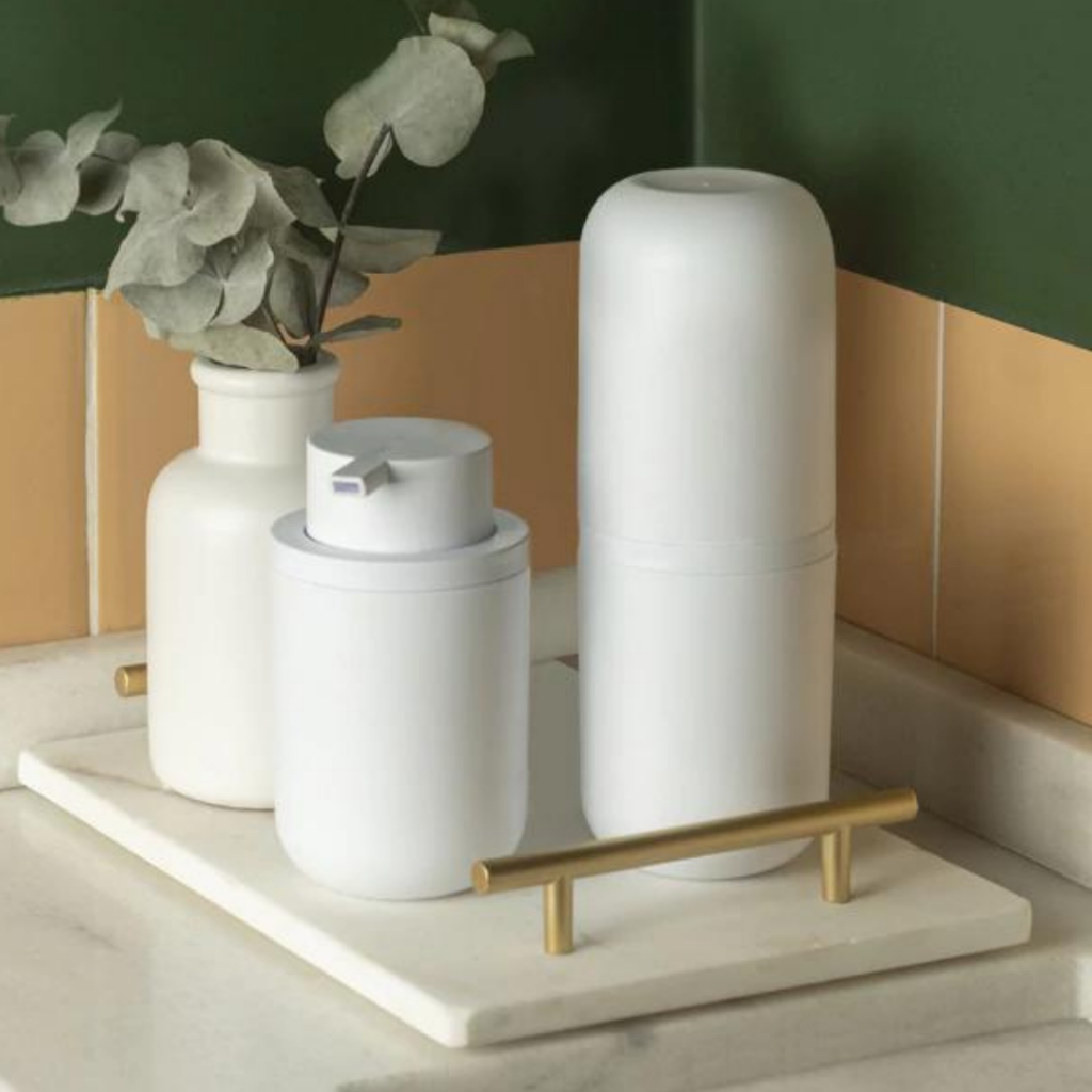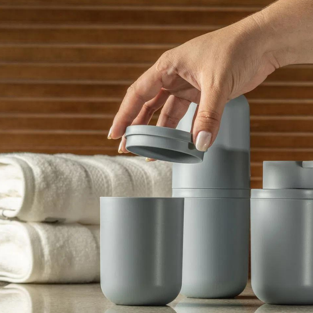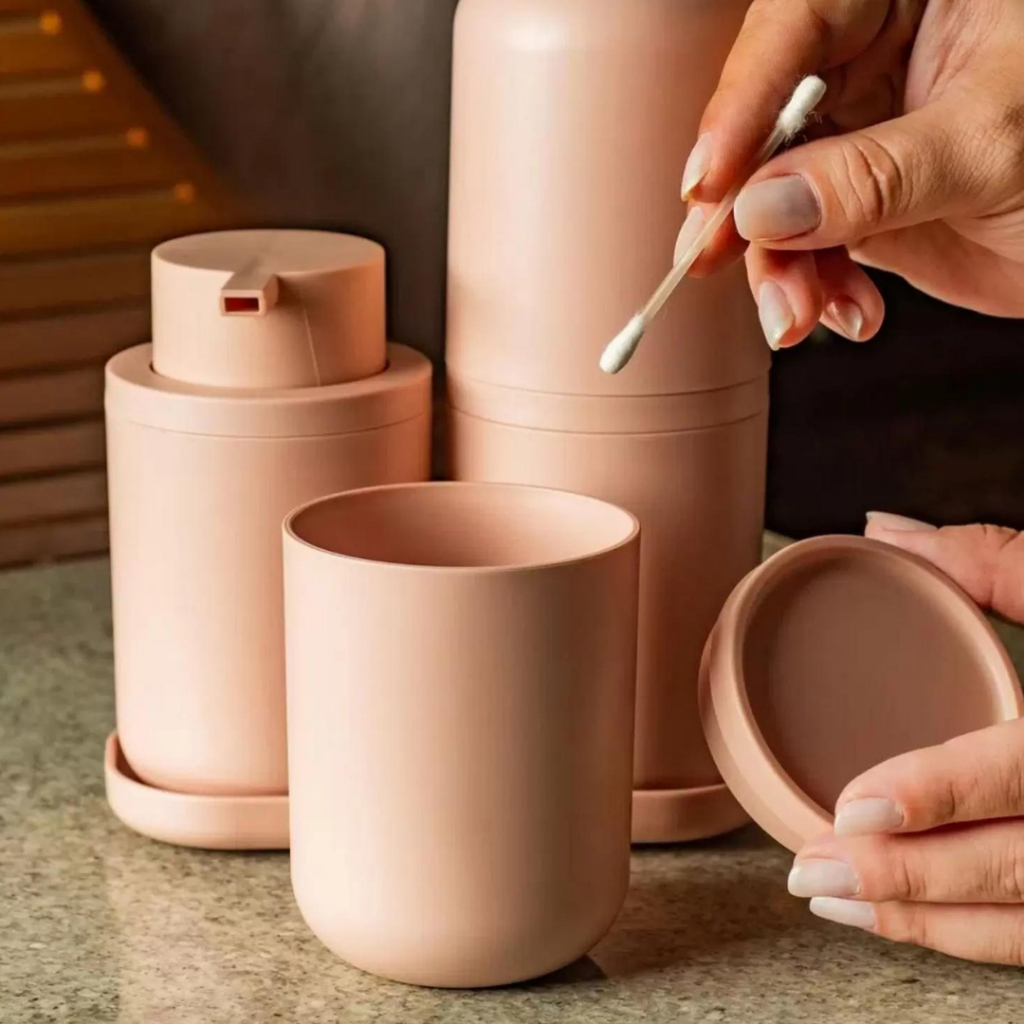 Kit 3 peças Conjunto de Banheiro Porta Sabonete Liquido 300ml + Porta Escova de Dentes + Bandeja Ou