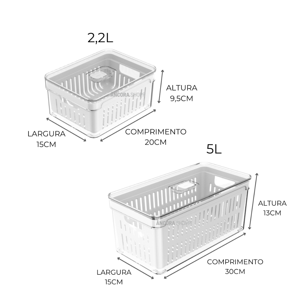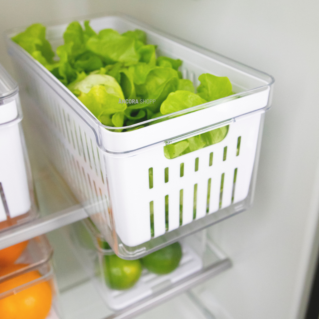 Kit 2 Organizadores De Geladeira 2,2L / 5 Litros Com Bandeja Drenagem Porta Frutas Legumes Vegetais
