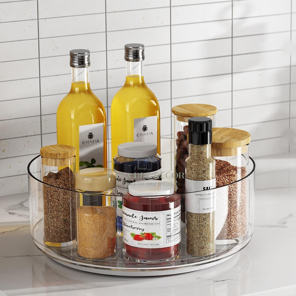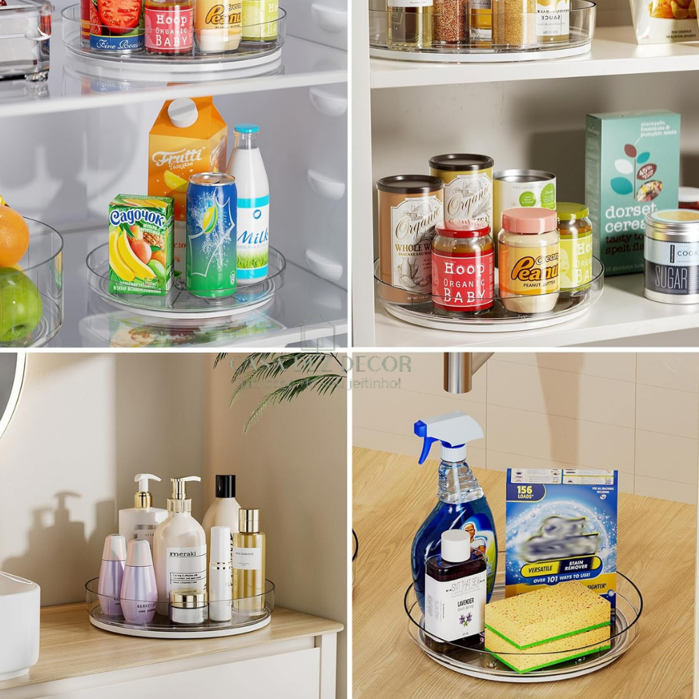 Organizador Giratório 18cm / 24cm Redondo de Acrílico para Maquiagem Cosmético Perfume Alimento 360º