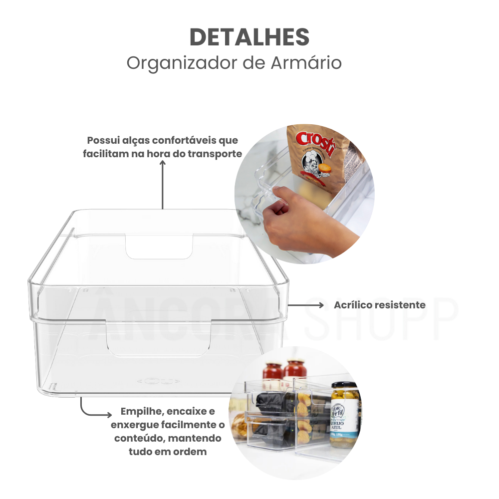 Organizador de Cozinha Armário Lavanderia Multiuso Ou Clear 30 x 15 Acrílico Organização Resistente
