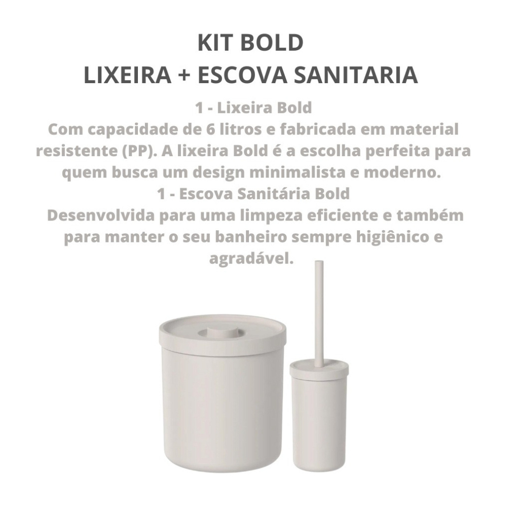 Kit Conjunto de Banheiro Lixeira 6 Litros + Escova Sanitária Limpeza de Vaso Privada Design Elegante