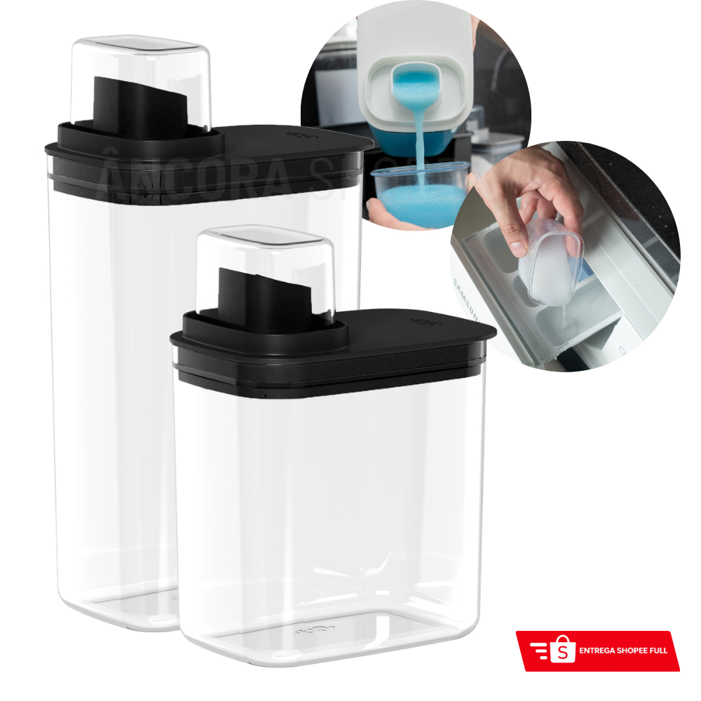 Kit Organizador de Lavanderia 2,3 + 1,5L Porta Amaciante Sabonete Sabão em Pó Liquido Limpeza Preto