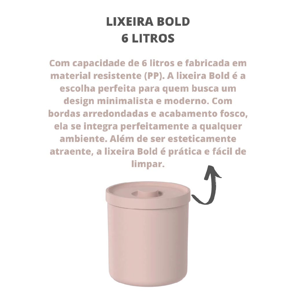 Lixeira Bold 6 Litros de Plástico Ou Cozinha e Banheiro Com Tampa Decoração Design Elegante