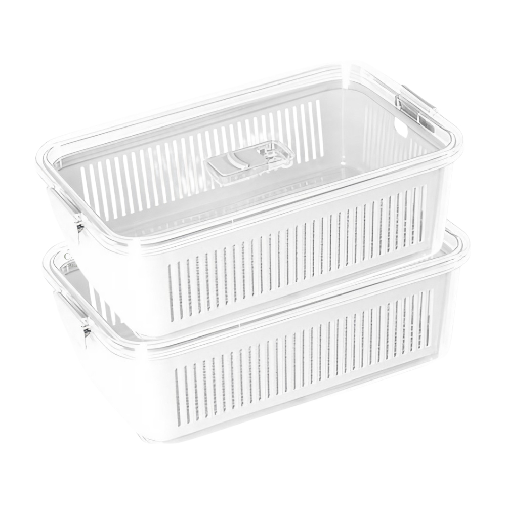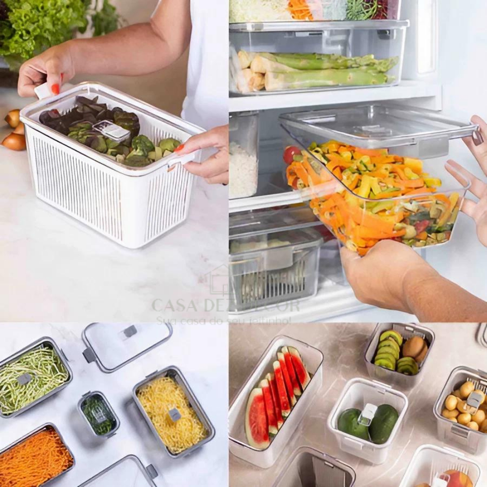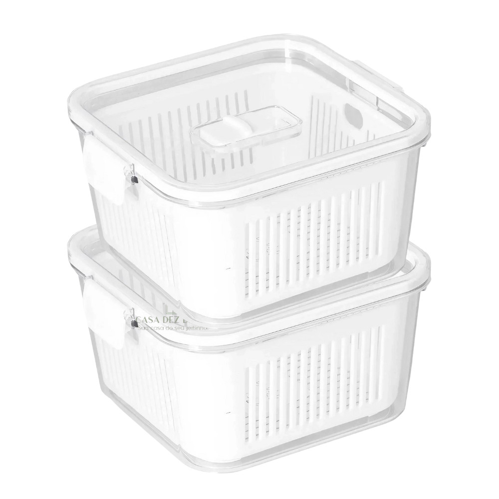 Kit 2 Organizador de Geladeira 1,3l / 2,5l Pote Hermético Plástico de Acrílico Tampa c/ Trava