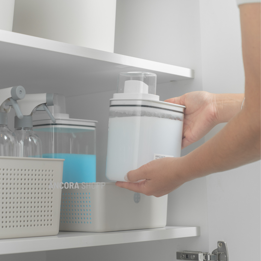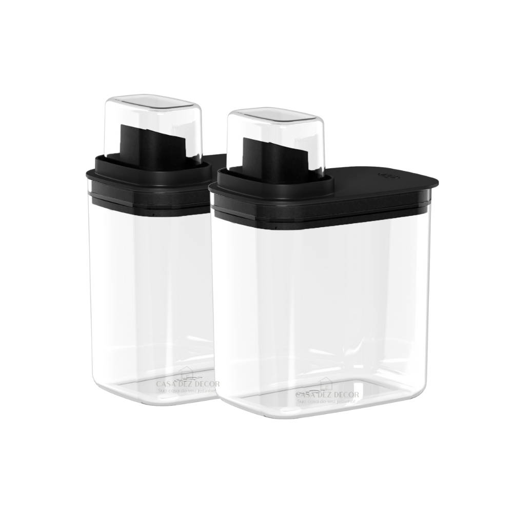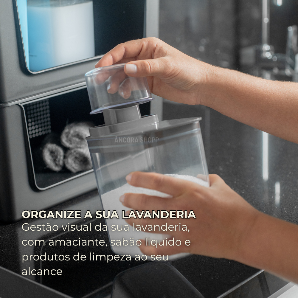 Kit Lavanderia 2 Dispenser 1,5L Pote Medidor Hermético Produtos Limpeza Organizador Flow OU