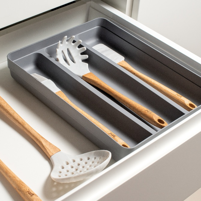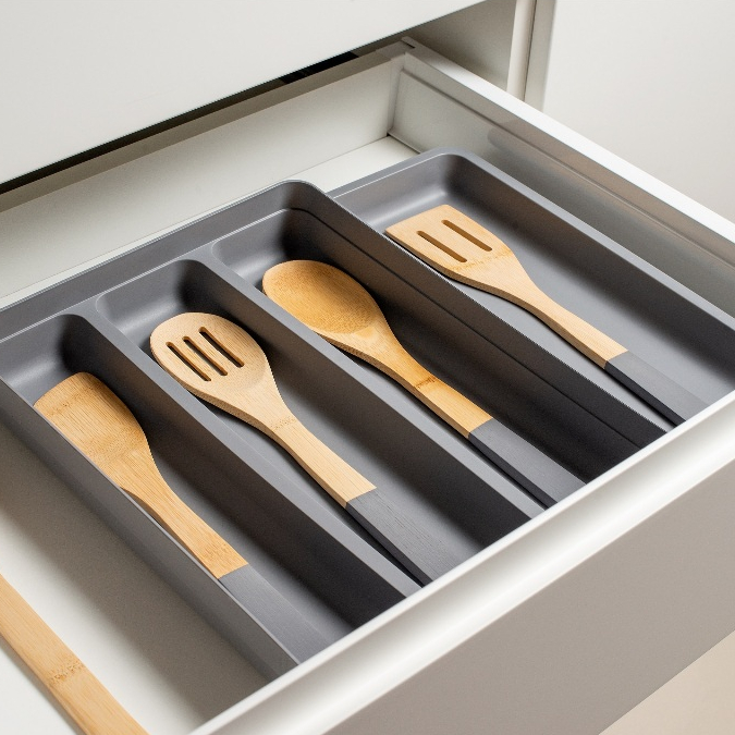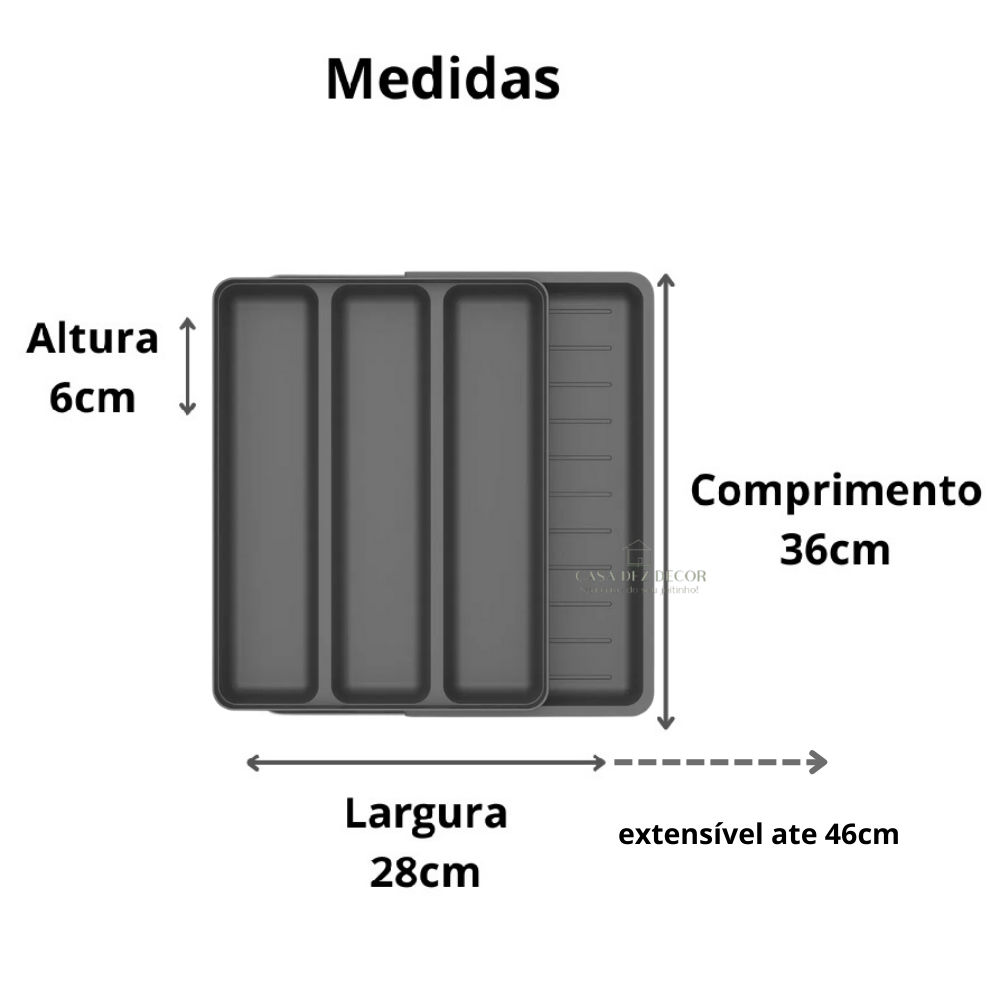 Porta Talher Organizador De Gaveta com Extensor Cozinha 4 Divisorias Utensílios de Cozinha 36 x 28cm